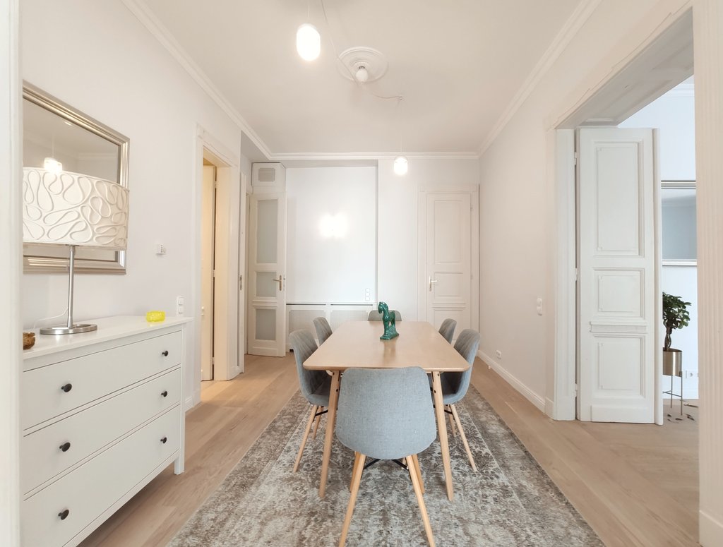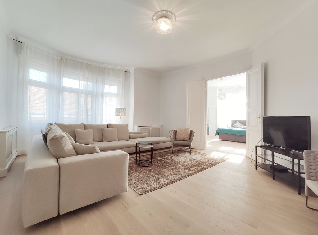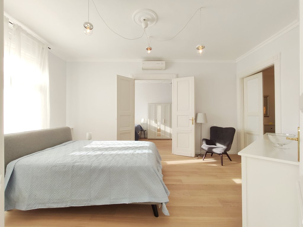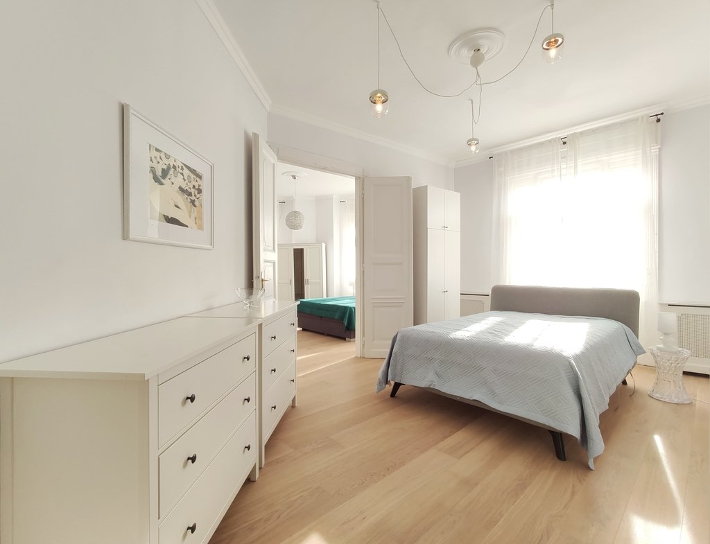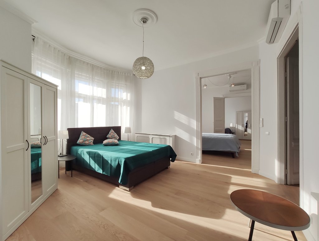 Felújított, 163 nm-es belvárosi lakás kiadó a Vásárcsarnok közelében. A lakás a 4.emeleten található, kialakításra került egy tágas nappali, 4 hálószoba, étkezőrész és szalon, 2 fürdőszoba, egy vendégmosdó, 2 hangulatos erkély és egy felszerelt, szeparált konyha. Az ingatlan légkondicionált és riasztóberendezéssel védett. A saroklakásban teljesen új bútorzat található, csodálatos napfényes terekkel rendelkezik. Ideális választás pároknak, családoknak. Az 5.kerület egyik leghangulatosabb utcájában található, remek tömegközlekedési és vásárlási lehetőségekkel.