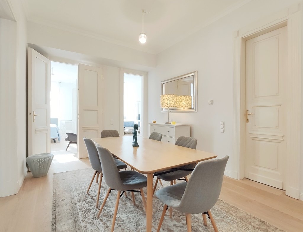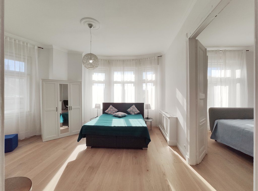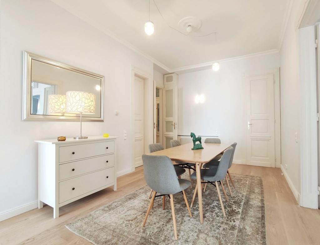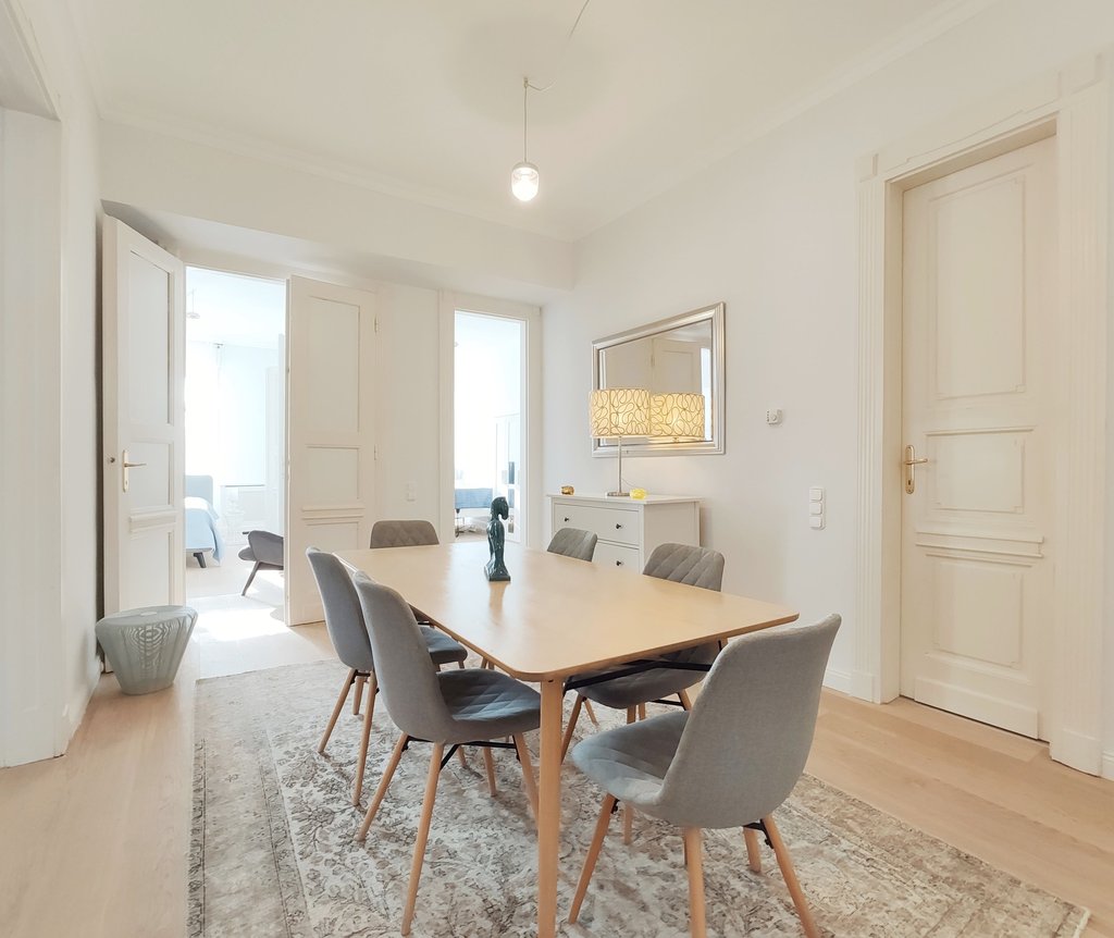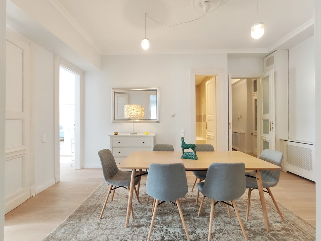 Felújított, 163 nm-es belvárosi lakás kiadó a Vásárcsarnok közelében. A lakás a 4.emeleten található, kialakításra került egy tágas nappali, 4 hálószoba, étkezőrész és szalon, 2 fürdőszoba, egy vendégmosdó, 2 hangulatos erkély és egy felszerelt, szeparált konyha. Az ingatlan légkondicionált és riasztóberendezéssel védett. A saroklakásban teljesen új bútorzat található, csodálatos napfényes terekkel rendelkezik. Ideális választás pároknak, családoknak. Az 5.kerület egyik leghangulatosabb utcájában található, remek tömegközlekedési és vásárlási lehetőségekkel.
