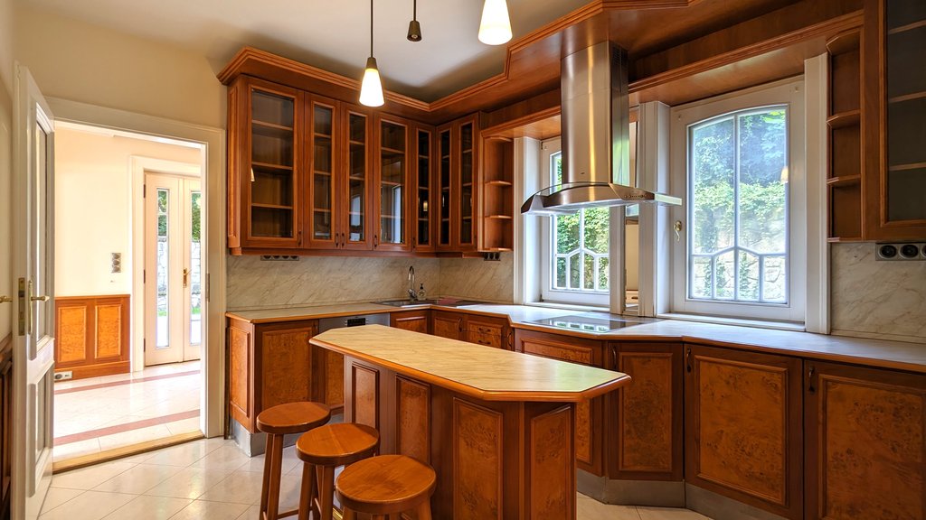 Budapest XII. kerületének egyik legmagasabb presztízsű utcájában családi ház kiadó. A négyszintes ingatlan alagsorában szauna, jakuzzi, tároló helyiségek, zuhanyzós fürdőszoba, öltöző, közösségi tér és négy állásos garázs található. A lakótér három szintjén tágas konyha, három nagyméretű nappali, öt hálószoba, gardrób helyiség, három fürdőkádas fürdőszoba és négy vendégmosdó kapott helyet. A riasztóval felszerelt otthon alsó szinten lévő kandallós nappalija teraszkapcsolatos, mely tavasztól őszig meghitt reggelik színtere lehet. A teraszról bámulatos panorámában gyönyörködhetnek a lakók, a hatalmas gondozott kert játszótérrel kiválóan alkalmas a gyerekeknek. A ház a 112-es busszal könnyen megközelíthető. A közelben közkedvelt klub is található teniszpályával, étteremmel, uszodával.