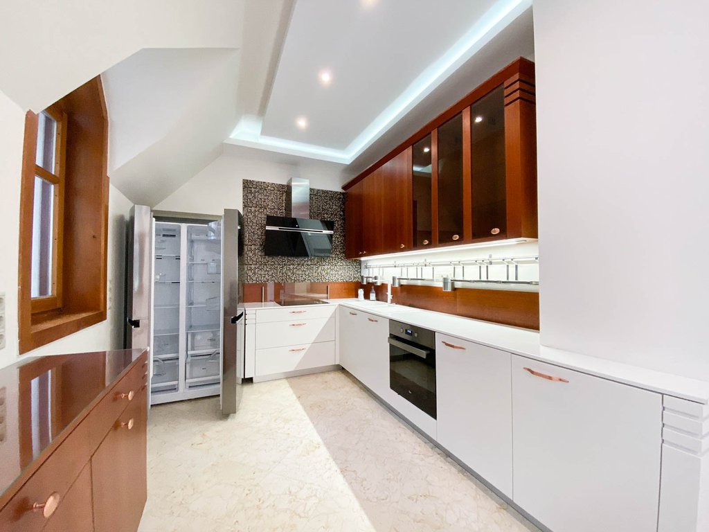Második kerület csöndes utcájában egy igényesen felújított önálló családi ház kiadó. Házat szépen gondozott kert veszi körbe. Ingatlanban található egy külön bejáratú lakrész/vendég apartman : amerikai konyhás nappali, hálószoba, fürdőszoba zuhanyzóval. Hangulat- és LED világítás, ezenkívül beépített szekrények a ház minden szintjén. A ház alsó szintjén wellness részleg van: jelenleg szauna, külön zuhany és igény szerint alakítható helyiség. Az emeleten világos déli fekvésű nappali kandallóval, dolgozó, amerikai konyha, és vendégek számára kialakított fürdőszoba WC-vel. A nappaliból kilépve az udvarra egy hangulatos, külső hangszórókkal felszerelt terasz áll a lakók rendlekezésére, A legfelső szinten 3 hálószoba van és kettő fürdőszoba. A garázsban és a felhajtón 3-3 autó kényelmesen parkolhat. Külön extrák: automata öntöző a kertben, fedett és nem fedett terasz, legmodernebb biztonsági és mozgásérzékelős rendszer. Bevásárlás és közlekedés szempontjából is kiváló.