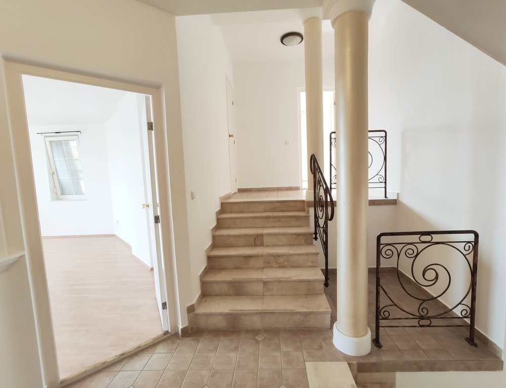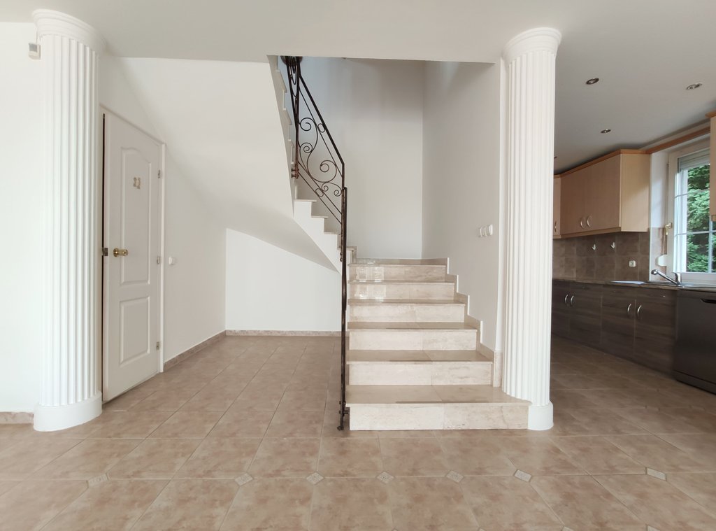 Belső kétszintes lakás kiadó 3 lakásos társasházban, Tetvérhegyen. A csodálatos panorámával rendelkező ingatlan a III. kerület csendes, tiszta levegőjű hegyvidéki részén helyezkedik el. A 280-an négyzetméteres, bútorozatlan ingatlan alsó szintjén található a tágas, napfényes amerikai konyhás nappali kertkapcsolatos terasszal, két hálószoba terasszal, mosókonyha, kamra, vendégmosdó és a kétállásos garázs. A felső szinten található további két hálószoba, szintén nagyméretű terasszal, valamint a zuhanyzóval és sarokkáddal rendelkező hatalmas fürdőszoba is. Az ingatlan főbejárata a felsőbb szinten található. A Hármashatárhegy közelsége miatt az ingatlan kifejezetten ideális a természet kedvelői számára. A British School pár perc autóútnyira található.