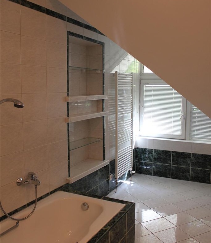 Kiadó a XII. kerületben, egy nagycsaládosok számára is ideális ikerház-fél. Az alsó szinten egy tágas és kertkapcsolatos hálószoba, egy fürdőszoba, számos tároló, egy kisebb hálószoba és a mosókonyha lett kialakítva. A következő szinten van a nappali és a tágas amerkai konyha, egy nagy terasz és egy vendég WC. A második szinten található a szülői háló külön hatalmas fürdőszobával és gardróbbal, egy kisebb hálószoba, szintén fürdőszobával. A legfelső szinten további 1 hálószobát találunk, mely kiválóan alkalmas dolgozószobának is. A teraszokról és erkélyekről szép kilátás nyílik a környékre. A kétállásos garázshoz fűthető garázslejárón jutunk le. Bútorozás magasabb bérleti díj mellett lehetséges.