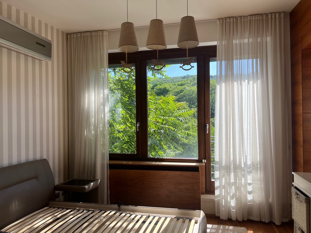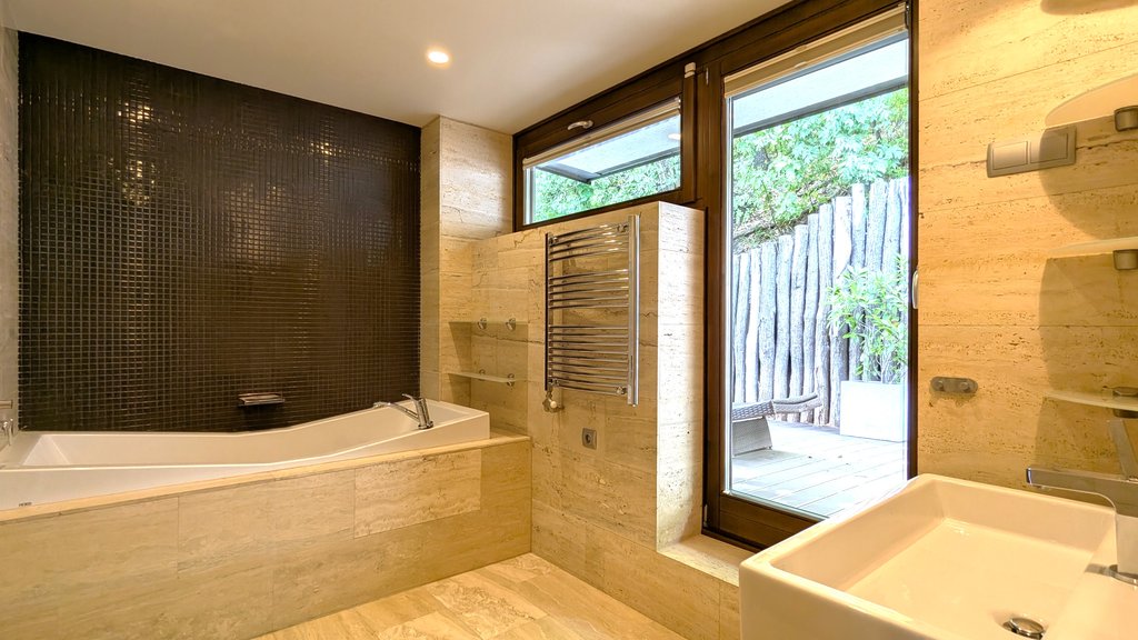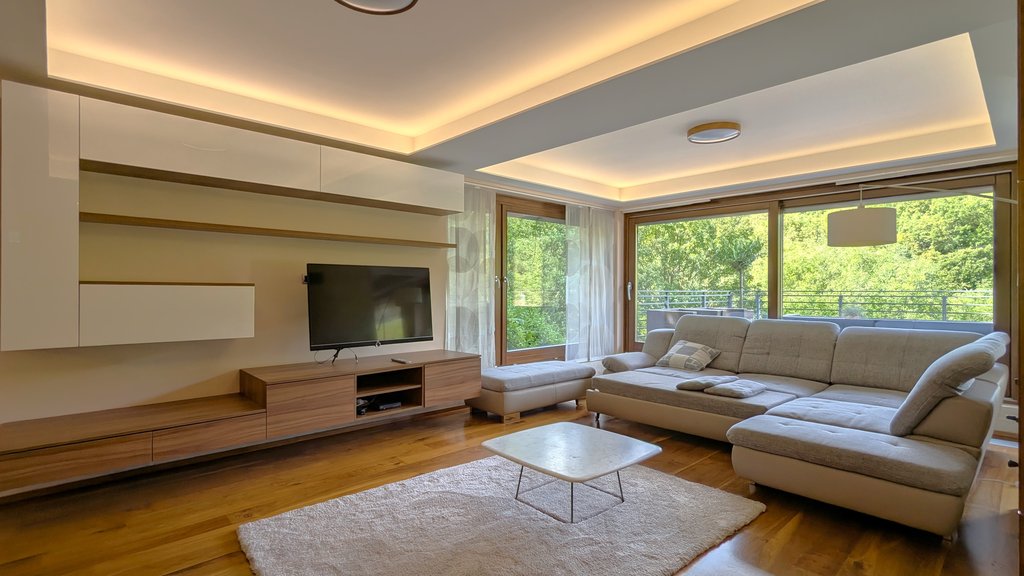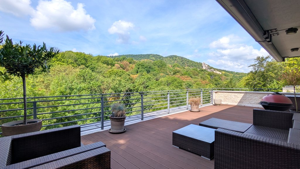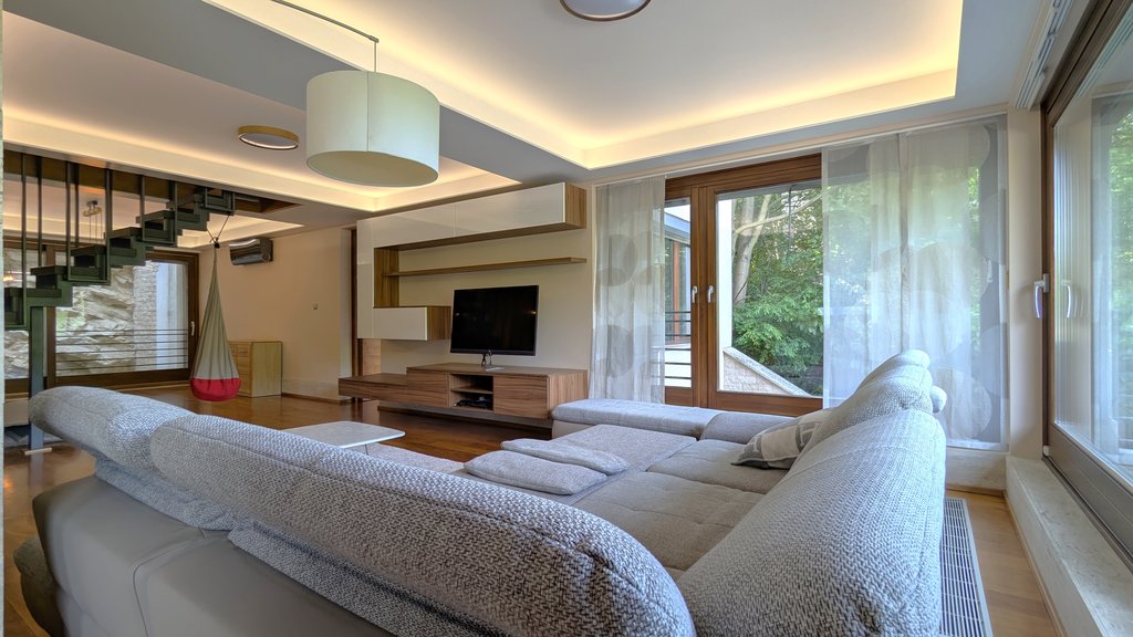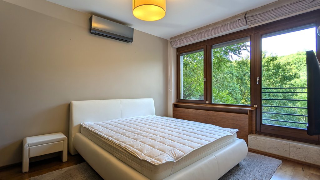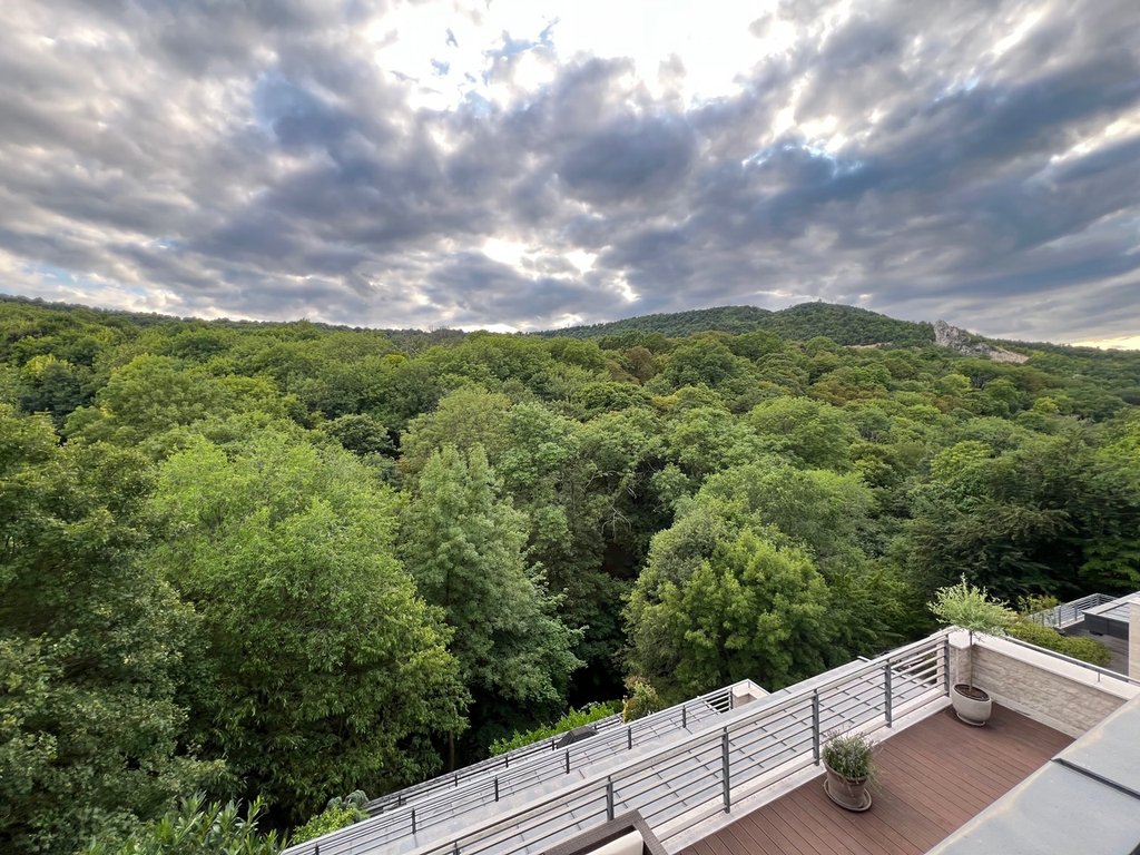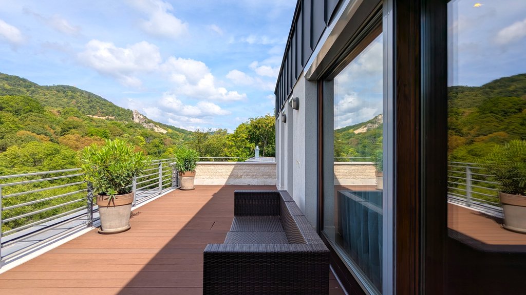 Gyönyörű, modern stílusban kialakított tágas, csendes, panorámás ingatlan kiadó a 12. kerület hegyvidéki részén. A belső kétszintes penthouse lakásban egy konyha, egy étkezős nappali saját dolgozósarokkal, valamint 3 hálószoba található, mindegyik saját (egyik káddal és mindhárom zuhanyzóval) fürdőszobával, illetve egy külön vendég mosdó. A lakáshoz több terasz (összesen 140 nm) tartozik, az egyik a nappaliból, míg további 2 terasz a fenti 2 hálóból és fürdőszobából nyílik, ahol a kinti jacuzzit is élvezni lehet a teraszról. A szülői hálóhoz és egy további hálóhoz saját gardróbszoba is tartozik. Az ingatlan légkondícionált, motoros redőnyökkkel felszerelt és mosókonyha szolgálja az itt élők kényelmét. Dupla garázsa és saját tárolója is van a lakásnak, amelynek mindennapjait a 0-24 órában rendelkezésre álló gondnok segíti.
