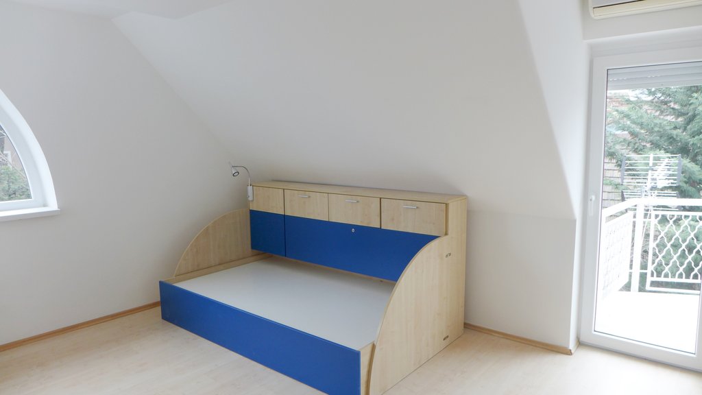 Kellemes ikerház kiadó bútorral vagy bútor nélkül Törökvészen bevásárló központ közelében. Egy szinten 5 hálószoba, gardróbszoba, 3 fürdőszoba található. Hatalmas nappaliban található az amerikai konyha illetve étkező. Nappali padlófűtéses. Az 5. hálószoba a lenti szinten kapott helyett. A kert kiválóan alkalmas gyerekek számára. A garázsból közvetlen feljárat van a házba. A ház légkondicionált és riasztóval felszerelt.