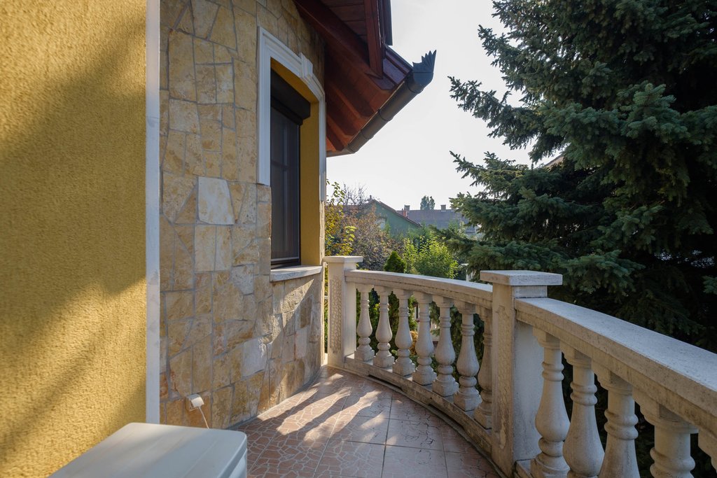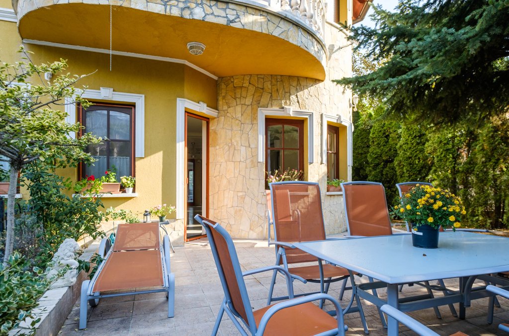 2006-ban épült 3 szintes, 600 nm-es családi ház kiadó/eladó 1054 nm növényekben gazdag, impozáns kerttel. Teremgarázs: A fűtött gépkocsi feljáró és teremgarázs részen akár 3 gki is tud parkolni (elektromosautó töltése biztosított). Itt található külön kerékpár- és keréktároló, az uszoda rendszer gépészete, egy éléskamra és egy zárt tároló, amely akár páncélteremmé is átalakítható. Az utca szinten található 2 autónak fedett garázsbeálló, elektromosautó töltési lehetőséggel. Alsó szint: vendéglakrész (szoba, konyha, fürdő), tárolók. Fszt: amerikai konyhás nappali étkezővel és márvány kandallóval, kertkapcsolatos, utcáról belátásmentes terasszal. A fsz.-ről nyíló wellness helyiségben található egy 10 x 3 m úszómedence, 2 szauna (2 személyes infra, 6 személyes kombinált), jacuzzi. Em.: 4 hálószoba (az egyikhez fürdő és gardrób), 2 fürdőszoba hidromasszázskádakkal, 2 erkély örök-panorámás kilátással, gardróbszoba, mosókonyha. Energetikai rendszer: Az fűtési rendszer 2 Buderus kazán, amely csak alkalmanként kell hogy működjön a hőszivattyús alap-fűtési rendszer miatt. A légterekben radiátor és padlófűtés kombinációja található. Az energiatakarékos üzemmódot 42 db. napelem biztosítja. Kert: automatikus öntöző rendszerrel felszerelt, folyamatosan karbantartott növényzettel. Minden helyiség hűtő-fűtő légkondival felszerelt, a ház központi riasztóval és porszívóval ellátott. Egyéb: Kis termetű háziállat hozható!