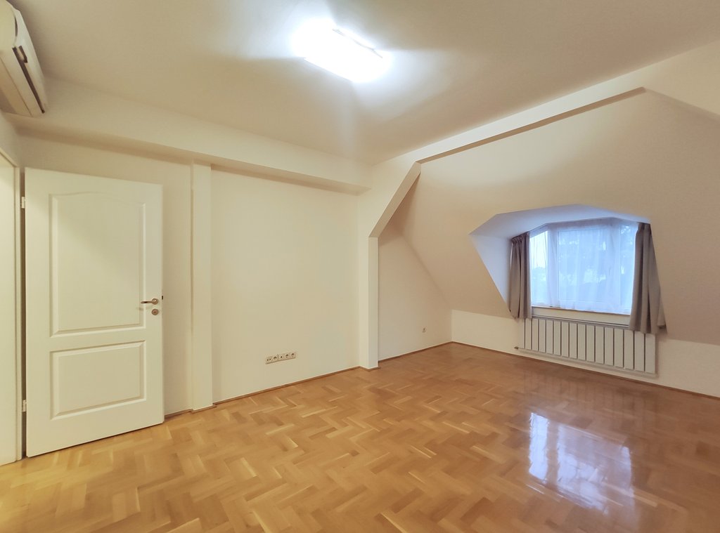 Kellemes hangulatú ikerház kiadó Orbánhegyen. Az ingatlan több nemzetközi iskola és óvoda közelében helyezkedik el. A házban 4 hálószoba kapott helyett, melyek közül 2 a felső szinten helyezkedik el hatalmas fürdővel, szeparált WC-vel és gardróbszobával. A lenti szinteken található a nappali és az Amerikai konyha étkezővel, vendégszoba, vendégmosdó. Az ingatlanhoz tágas panorámás teraszok és saját, rendkívül intim kert tartozik. Az alsó szinten kapott helyet a wellnesz rész, amelyben szauna, jacuzzi, fürdő és WC található. Rendkívül elegáns és kényelmesen használható belső terek jellemzik ezt az impozáns ingatlant. A ház magasabb bérleti díj mellett bútorozva is kiadó.