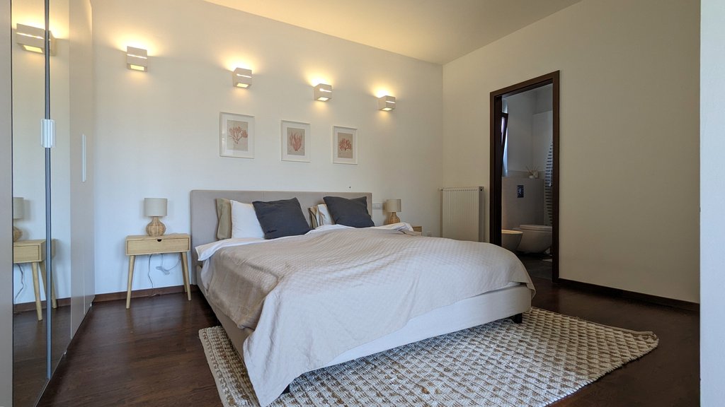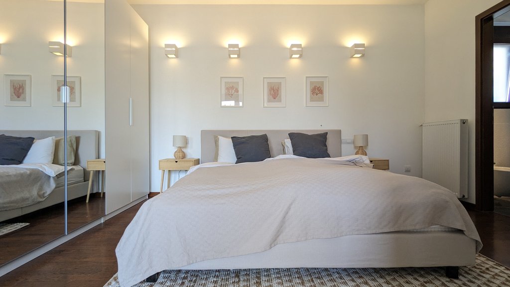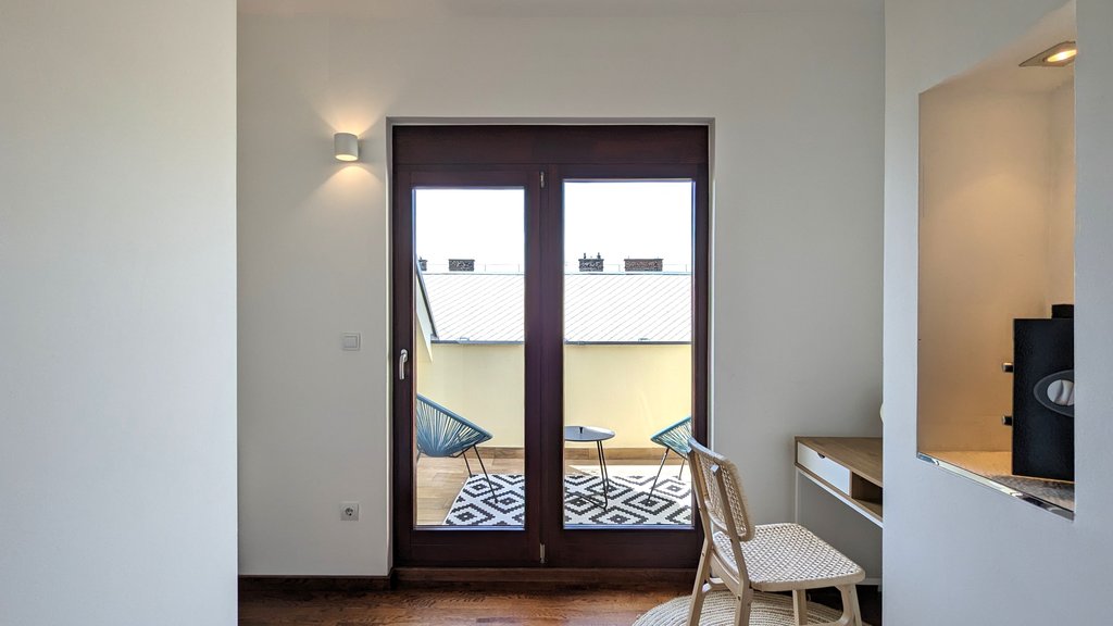 Kertes Penthouse a belvárosban? Ma már ez sem lehetetlen! Gyönyörűen felújított, liftes társasház legfelső emeletén egy luxus színvonalú, kiváló elrendezésű lakást kínálunk berendezve, közel a Nyugati térhez, csendes utcában. A 120 nm-es nettó alapterületű lakás több szempontból is kuriózum, kellemes nappali, konyha, 3 hálószoba, 2 fürdőszoba, 2 intim erkély, mosókonyha a beosztása és nem utolsósorban egy 80 m2-es privát terasz tusolóval és egy saját kis füves kert. Az ingatlan kialakításánál csak a legkiválóbb anyagok kerültek felhasználásra, az ablakokon redőnyök vannak, a köves részeken padlófűtés, a hálókban radiátor van. Számos rejtett világítás teszi a lakást még hangulatosabbá. Az itt élők biztonságáról a legmodernebb kamera és riasztórendszer gondosodik. Parkolni a szomszédos ház mélygarázsában lehet. Ha Önnek már tényleg csak „ az a szép zöld gyep” hiányzik, jöjjön el és nézze meg!