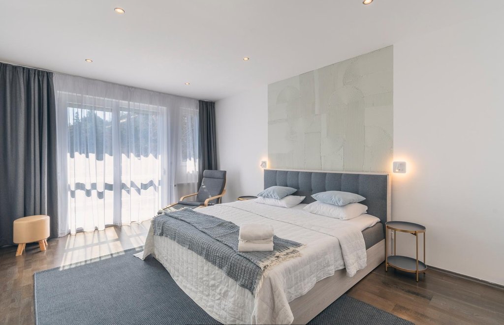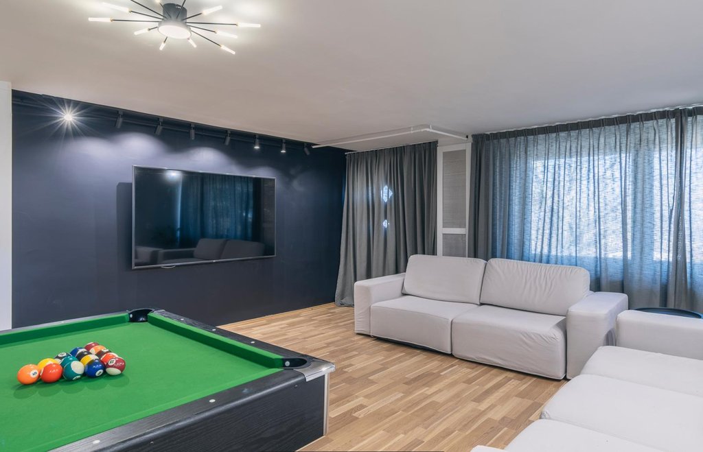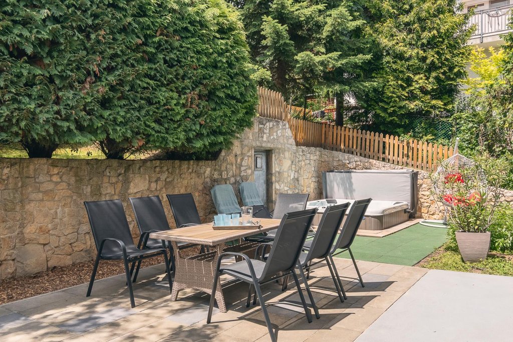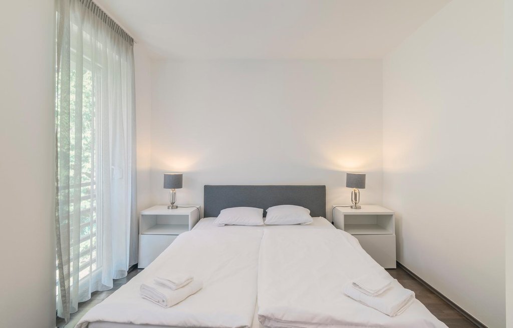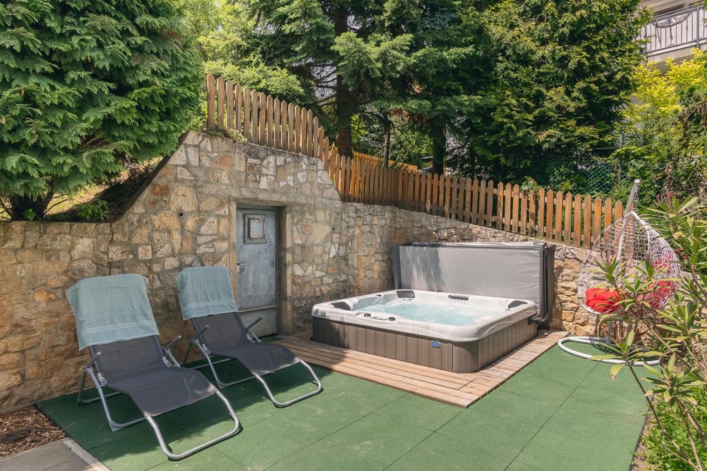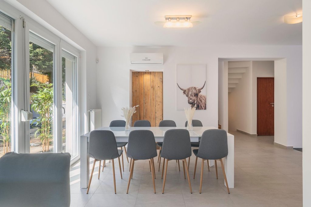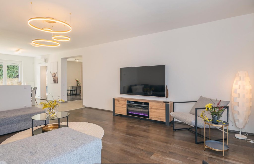 Near to the British International School, in beautiful green environment, a furnished detached house is for rent. The 3-storey property consists of a basement area and 2 living area levels. The alarm protected house is unfurnished but there are several built in wardrobes. All together 5 bedrooms, 4 bathrooms and a well-equipped open plan kitchen ensures comfortable everyday life for the tenants. There is direct connection to the balconies from the living room and from some of the bedrooms. The garden is 1000 sqm large and offers great time for family and friends enjoying relaxing summer days. One indoor garage and further outside parking place for one car are also available. There is a laundry, a shower and several storage places in the basement area. On the ground floor level you can find a spacious living room, a dining room, an open plan kitchen and a guest toilet, a nice children living room and a separated bedroom (can be used as master bedroom) with en-suite bathroom. The top floor includes 4 bedrooms and two bathrooms. Pets are welcome!