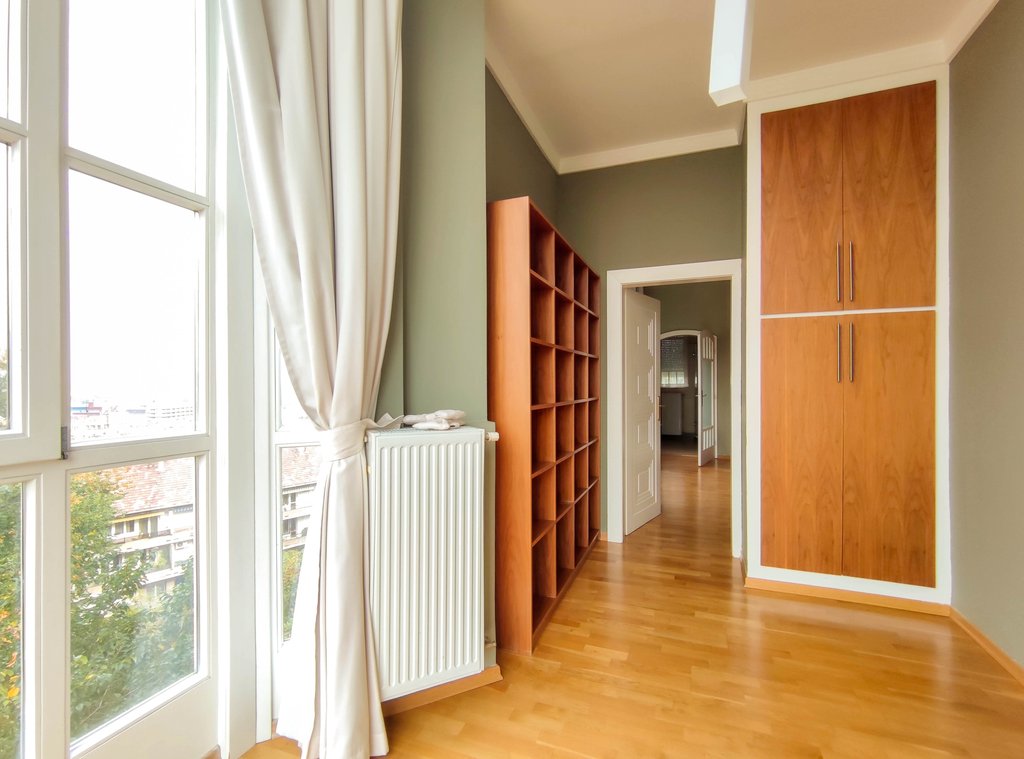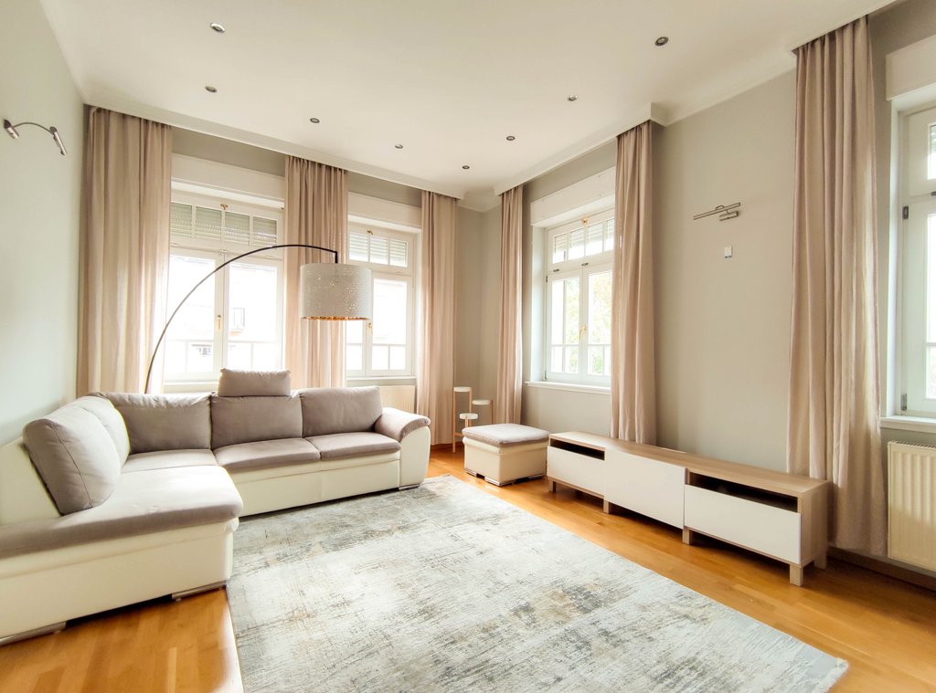 A Budai Vár tövében, egy magas minőségben felújított nagyon hangulatos 100 m2-es lakást kínálunk kiadásra. A villaépület kiváló állapotban van, a lakás a 2. emeleten található, gyönyörű panorámával. A nappali-étkező-konyha mellett helyet kap két háló és egy dolgozó, valamint 2 fürdőszoba, amelyek közül az egyik a szülői hálóból nyílik. A lakáshoz kisméretű erkély tartozik. Parkolás kényelmesen megoldható az utcán. A lakás légkondicionálóval, riasztóval, redőnyökkel van felszerelve. Jelenlegi állapotában bútorozatlan, de magas bérleti díj ellenében bútorral is bérelhető. Az utcában kis park és egy játszótér is található, a Mammut és a Batthyány tér is 10 perces sétával elérhető, buszmegálló az utca végén található.