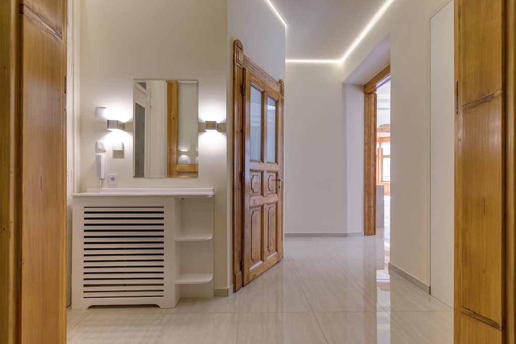 Belváros szívében a Szabadság tér közelében kiadó egy gyönyörűen felújított 90 nm-es igény szerint bútorozottan vagy bútor nélkül. Az ingatlanban kialakításra került egy tágas, napos amerikai konyhás nappali, két hálószoba, két fürdőszoba (az egyik zuhanyzós a másik sarokkádas). Az ingatlan légtisztításos légkondicionálóval felszerelt. A hálószobából két erkélyről is csodálhatjuk a Szabadság térre a kilátást. A környéken garázs bérelhető. A tömegközlekedés kiváló, metró és buszmegállók pár lépésnyire vannak. A környék nagyon kellemes, rengeteg híres étterem, kávézó található a környező utcákban, a Bazilika közelében és a Szabadság téren is.
