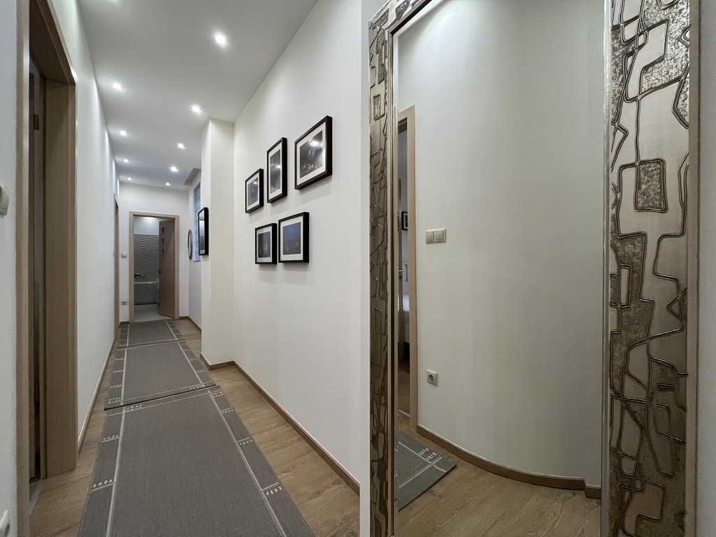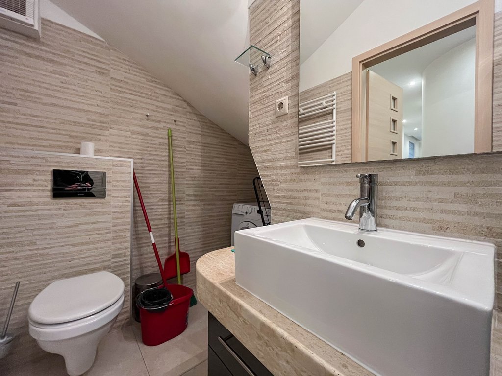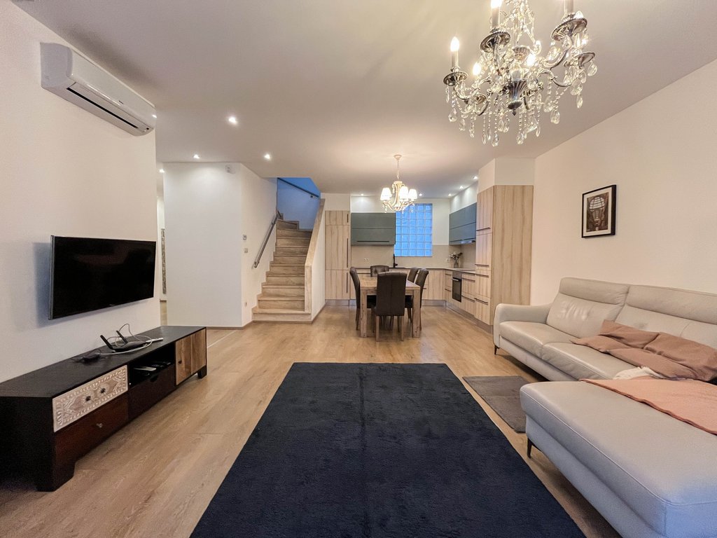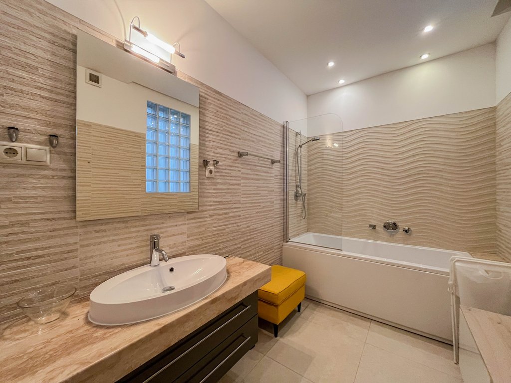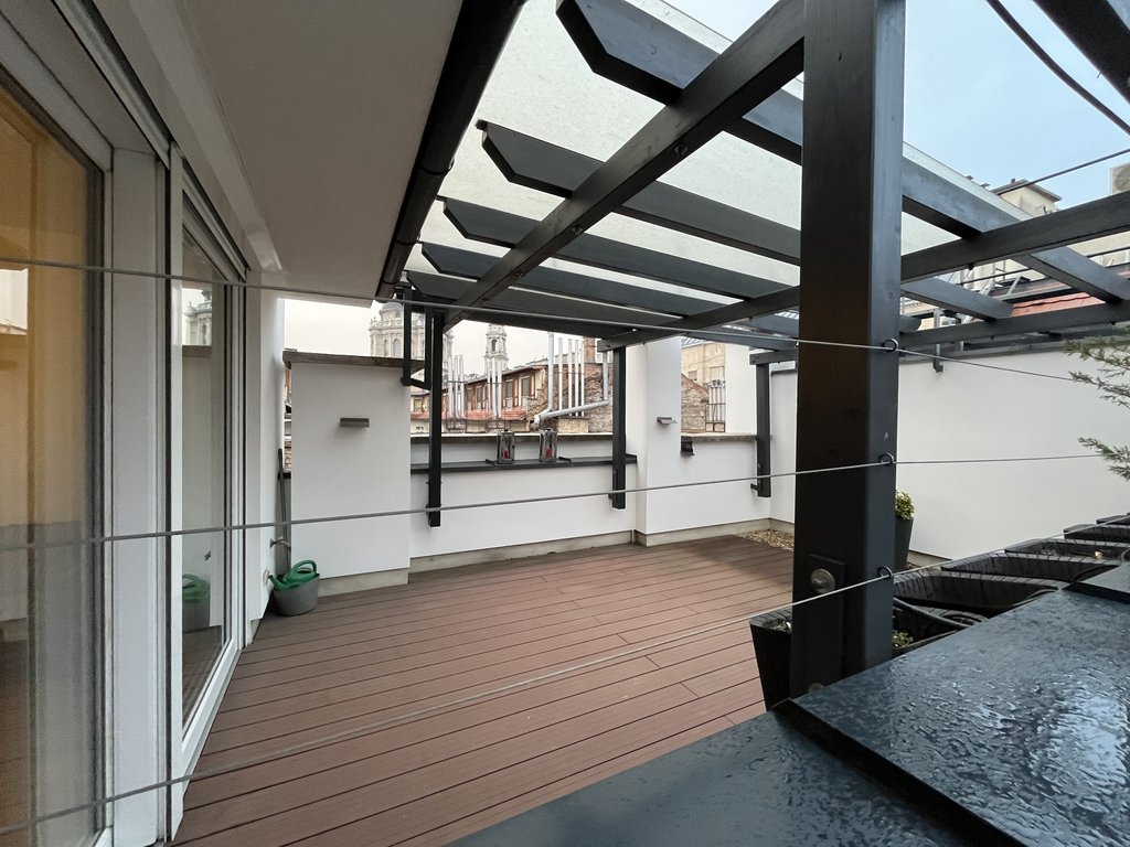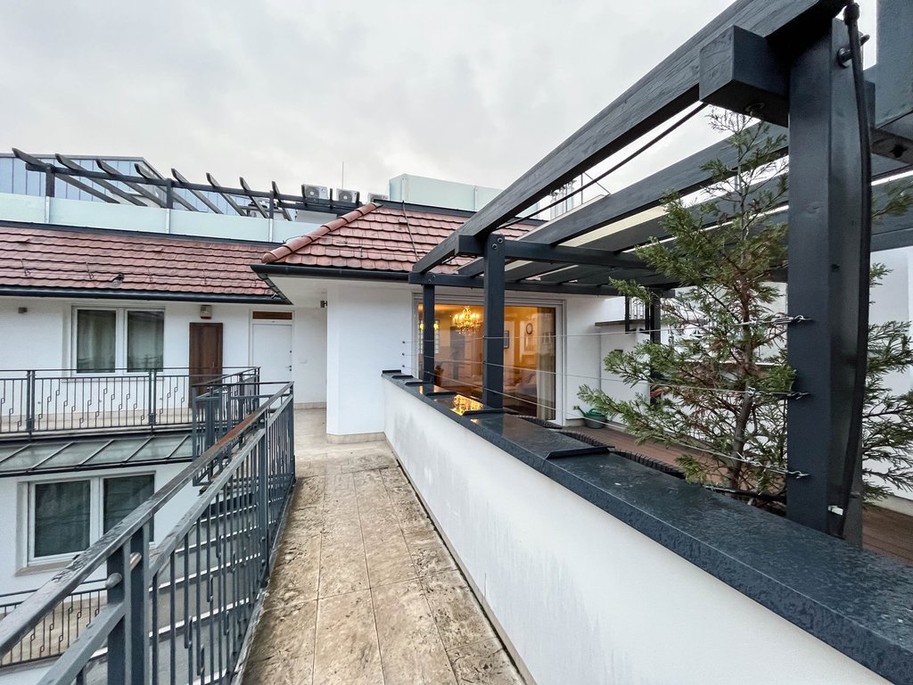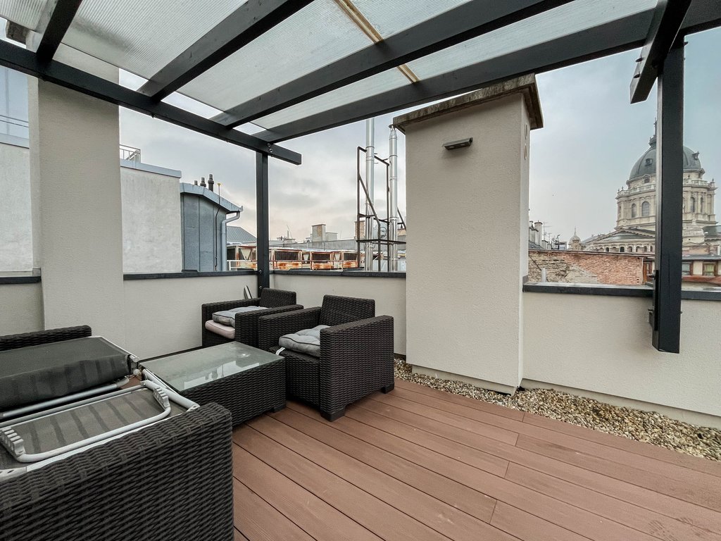 Egyedi adottságokkal rendelkező lakás kiadó a 6.kerület frekventált részén. Az épület frissen felújított, új üveglift segíti a 4.emeleti lakáshoz való feljutást. Az ingatlan kétszintes, a földszinti 96 nm-en kialakításra egy tágas amerikai konyhás nappali és étkezőrész, innen nyílik egy kb. 20 nm-es terasz, 2 hálószoba, valamint egy zuhanyzós és egy kádas fürdőszoba. Az emeleten egy pici konyha és hatalmas tetőterasz található, gyönyörű kilátással a Szent István Bazilikára. A lakás teljesen bútorozott, szobái légkondicionáltak. Ideális választás lehet pároknak, vagy egyedülállóknak. A környéken hangulatos utcák, kis kávézók és szórakozóhelyek sokasága található. A Deák Ferenc tér 5 perc sétatávolságra található, ahol több villamos, metró és buszmegálló könnyíti meg a közlekedést.