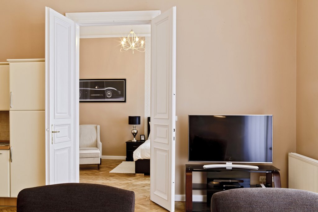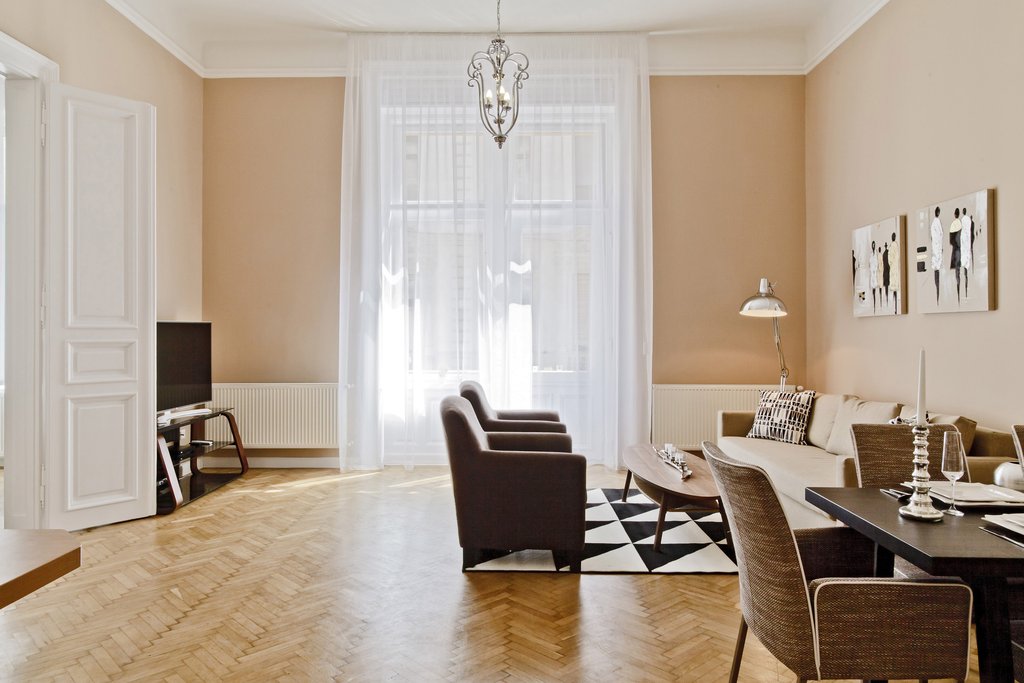 In the heart of Downtown, near to the Parliament and Szabadság Square, a 92 sqm luxurious, renovated apartment is for offer. The property is situated on the 1st floor of a classical beautiful building. It consists of a nice, huge living room with dining area, an open-stlye kitchen, 2 bedrooms, a bathroom with bathtub and a shower, a guest toilet and a storage room. The apartment has been refurbished based on interior design concept; it combines the classical with modern style. High quality wooden floor, electrical shutters, a fire place makes the property even more inviting. The apartment is alarm protected. The building has an elevator. The infrastructure of the area is excellent, bus and metro station can be reached by 5 minutes’ walk. Many restaurants, cozy cafes and entertainment facilities are available nearby.