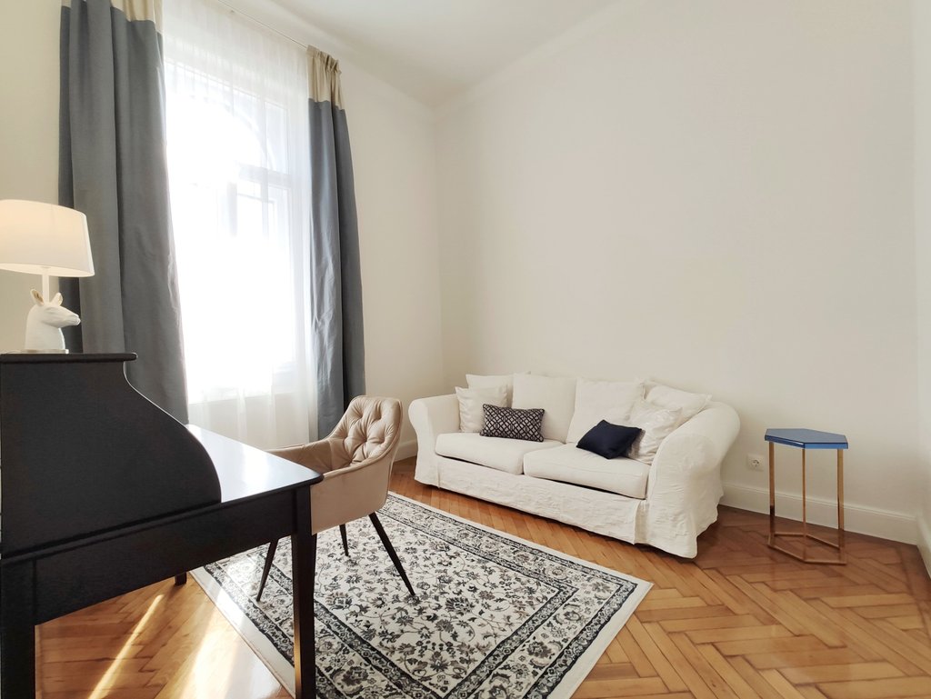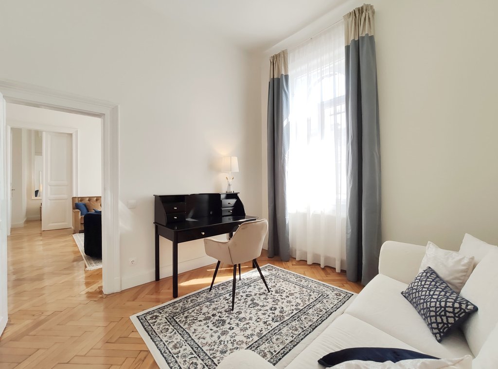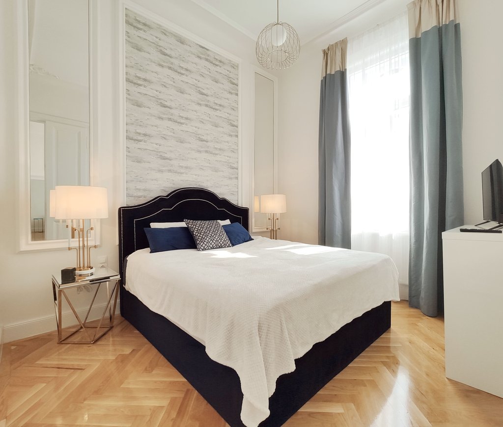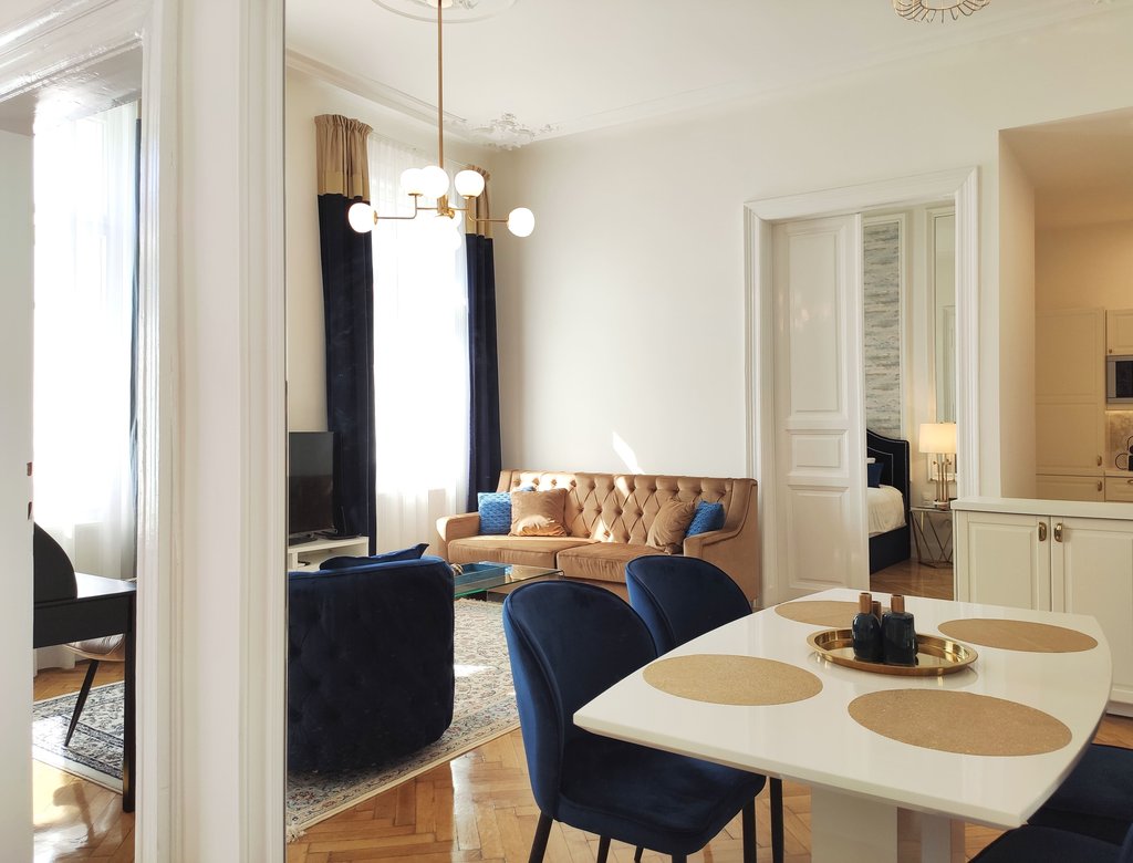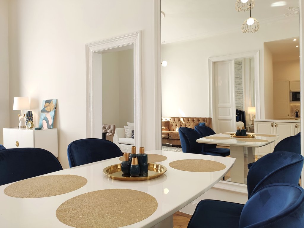 Frissen felújított, elegáns teljesen bútorozott utcai nézetű lakás kiadó a belvárosban, VI. kerületben az Andrássy úttól 1 sarokra. Az negyedik emeleti impozáns lakás 90nm-én kialakításra került egy teljesen felszerelt modern konyha, nappali étkezővel, szülői hálószoba saját fürdőszobával. További helyiségek még 2 hálószoba, egy 1 kádas fürdőszoba és mosókonyha. Az ingatlan légkondicionált és riasztóberendezéssel védett. A környék számos vásárlási és szórakozási lehetőséget kínál, neves divatházak üzletei, szépségszalonok, éttermek, kávézók is néhány perc alatt elérhetőek. Parkolás az utcán lehetséges, illetve a közelben őrzött parkolóházban garázs bérelhető. A tömegközlekedési lehetőségek kiválóak a környéken: Földalatti, villamos, buszmegállók pár lépésnyire találhatóak. Ideális otthont nyújthat pároknak, üzletembereknek, illetve mindazoknak, akik kedvelik a belvárosi nyüzsgést.