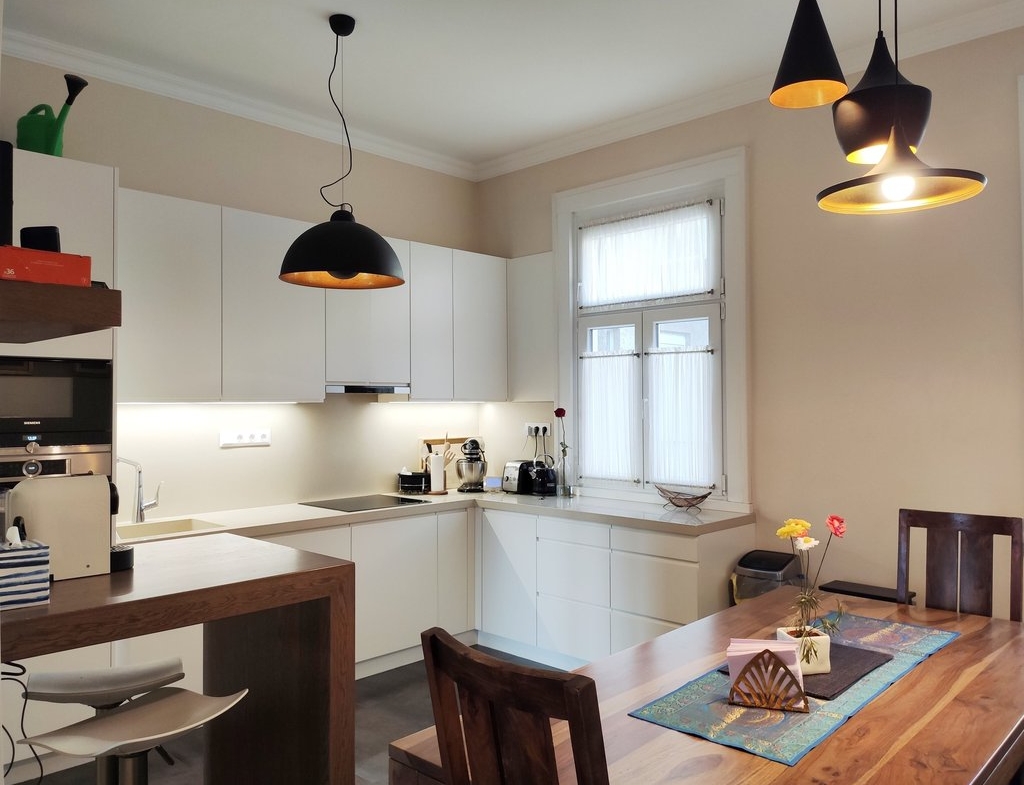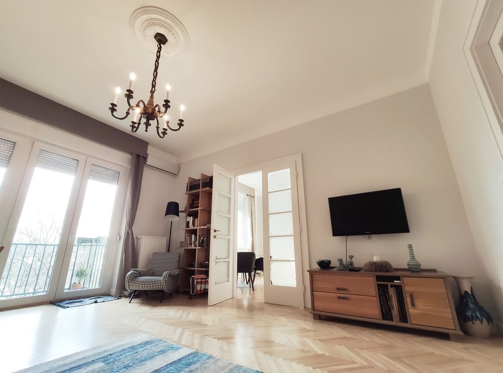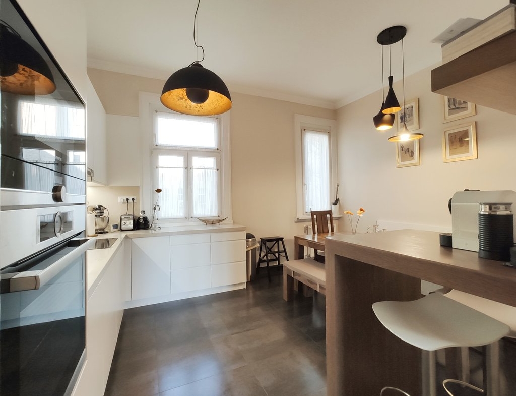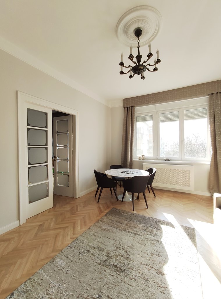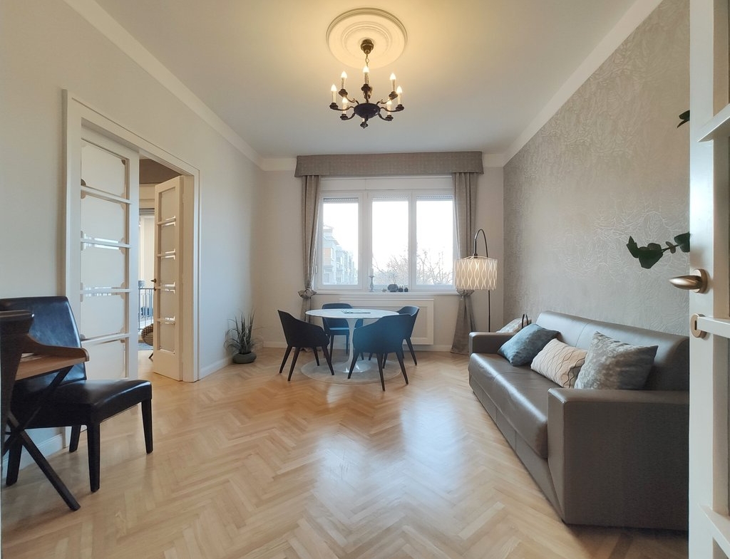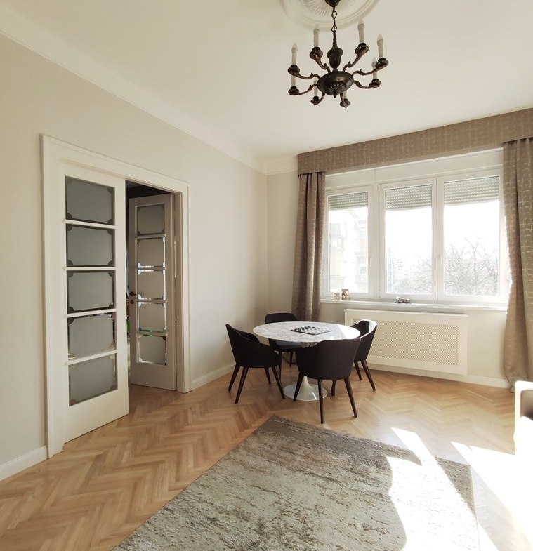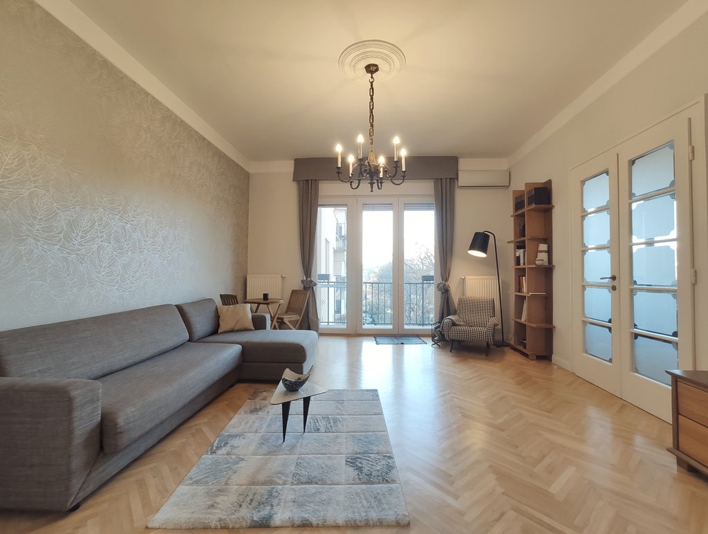 A 13. kerületben, egy tágas, 4. emeleti lakás kiadó. A 104 nm-es ingatlanban kialakításra került egy amerikai konyha étkezővel, egy nappali, 2 hálószoba, 2 fürdőszoba és egy 4nm-es erkély. A teljesen bútorozott és felszerelt lakás tökéletes választás lehet pároknak és családoknak is egyaránt. Az erkélyről gyönyörű kilátás tárul elénk a Dunára, a Szent István parkra és a Margit-szigetre.