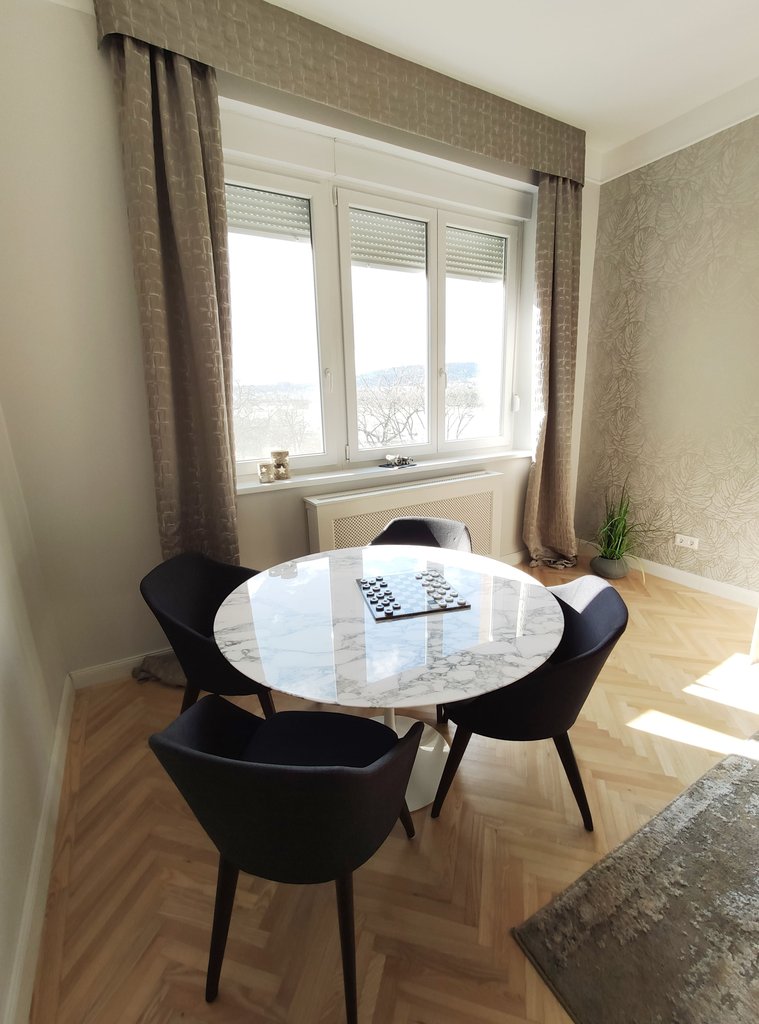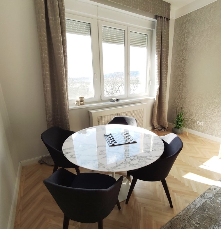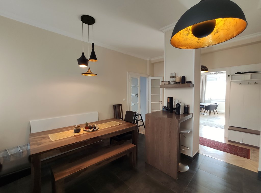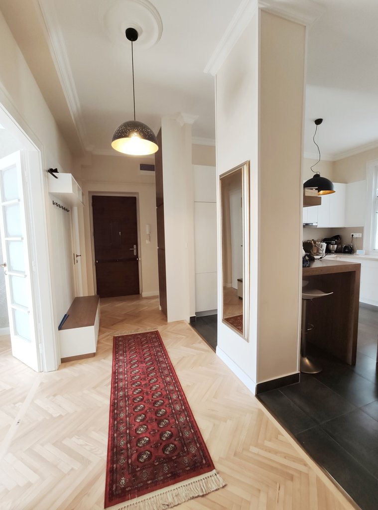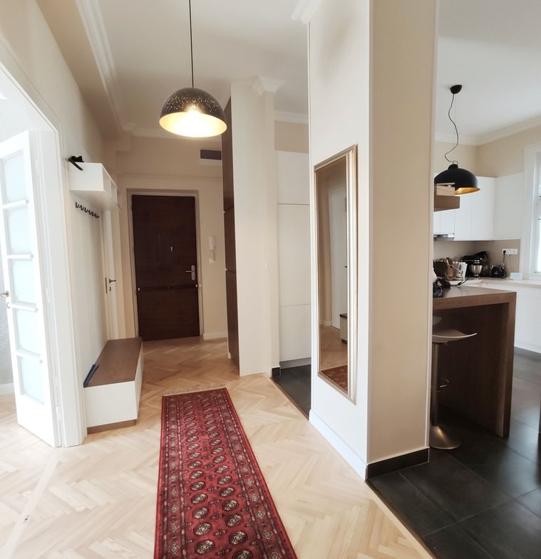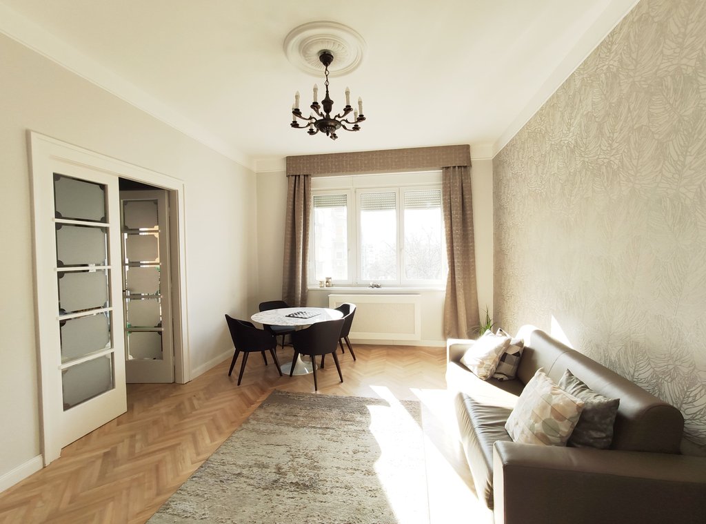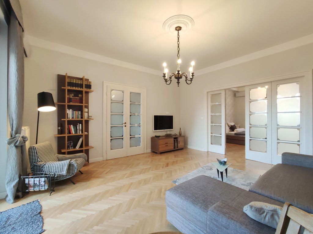 A 13. kerületben, egy tágas, 4. emeleti lakás kiadó. A 104 nm-es ingatlanban kialakításra került egy amerikai konyha étkezővel, egy nappali, 2 hálószoba, 2 fürdőszoba és egy 4nm-es erkély. A teljesen bútorozott és felszerelt lakás tökéletes választás lehet pároknak és családoknak is egyaránt. Az erkélyről gyönyörű kilátás tárul elénk a Dunára, a Szent István parkra és a Margit-szigetre.