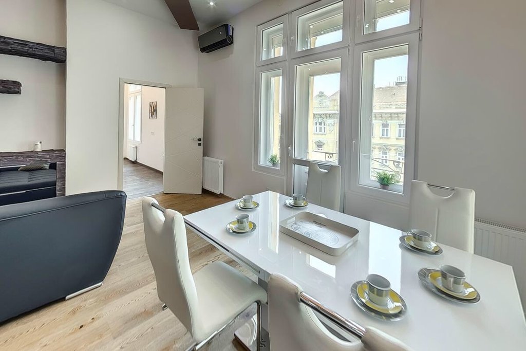 Kiadó a Pozsonyi útnál egy gyönyörű nagypolgári házban egy világos, panorámás lakás közel a Dunához, Margit szigethez és a városi nyüzsgéshez. Az ingatlan mérete 101 nm és a 4. emeleten helyezkedik el. Teljesen felújított és berendezett. A lakásban két hálószoba, két fürdőszoba és egy kellemes amerikai konyhás nappali lett kialakítva. Az erkélyéről gyönyörű panoráma nyílik a Dunára. Az épület nagyon rendezett és folyamatosan karbantartott, tiszta. A közlekedés kiváló, a környéken színház, számtalan étterem, kávéház, bevásárlási lehetőség áll rendelkezésre. A Margit sziget pedig kiváló kikapcsolódási, szórakozási és sportolási lehetőséget kínál.
