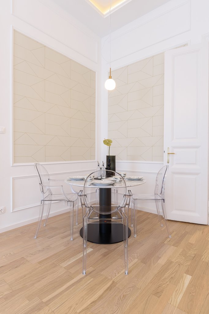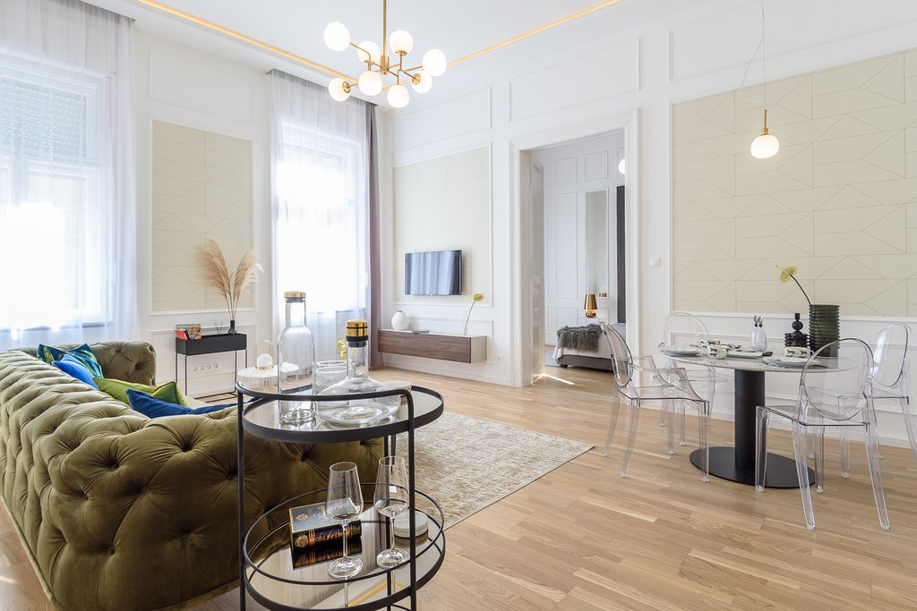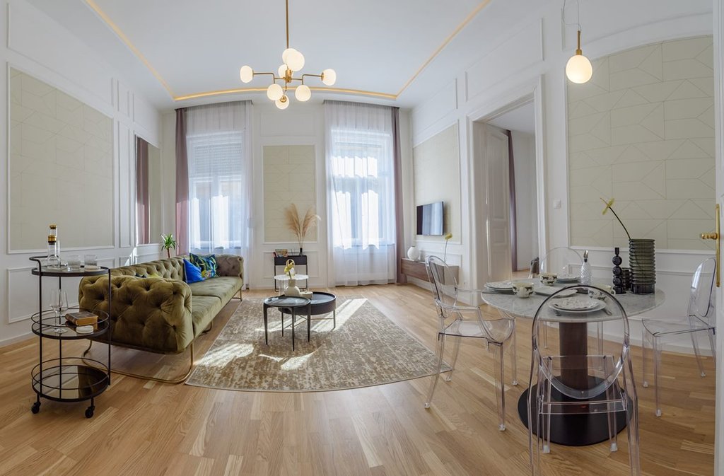 Közel a Nyugati térhez és Oktogonhoz, hangulatos utcában kiadó egy második emeleti frissen felújított elegáns, skandináv dizájner bútorokkal berendezett lakás. A 88 nm-es ingatlanban kialakításra került egy felszerelt konyha, tágas nappali és étkezőrész, 2 hálószoba, 2 zuhanyzós fürdőszoba, valamint egy utcára néző kis erkély. A lakás igényesen bútorozott, légkondicionálóval is felszerelt. A körút nyüzsgése 3 perc alatt elérhető, ahol népszerű éttermek és vásárlási lehetőségek sorakoznak. A lakás kiváló választás azoknak, a belvárosi forgatag közelében, mégis csendes utcában szeretnének élni.