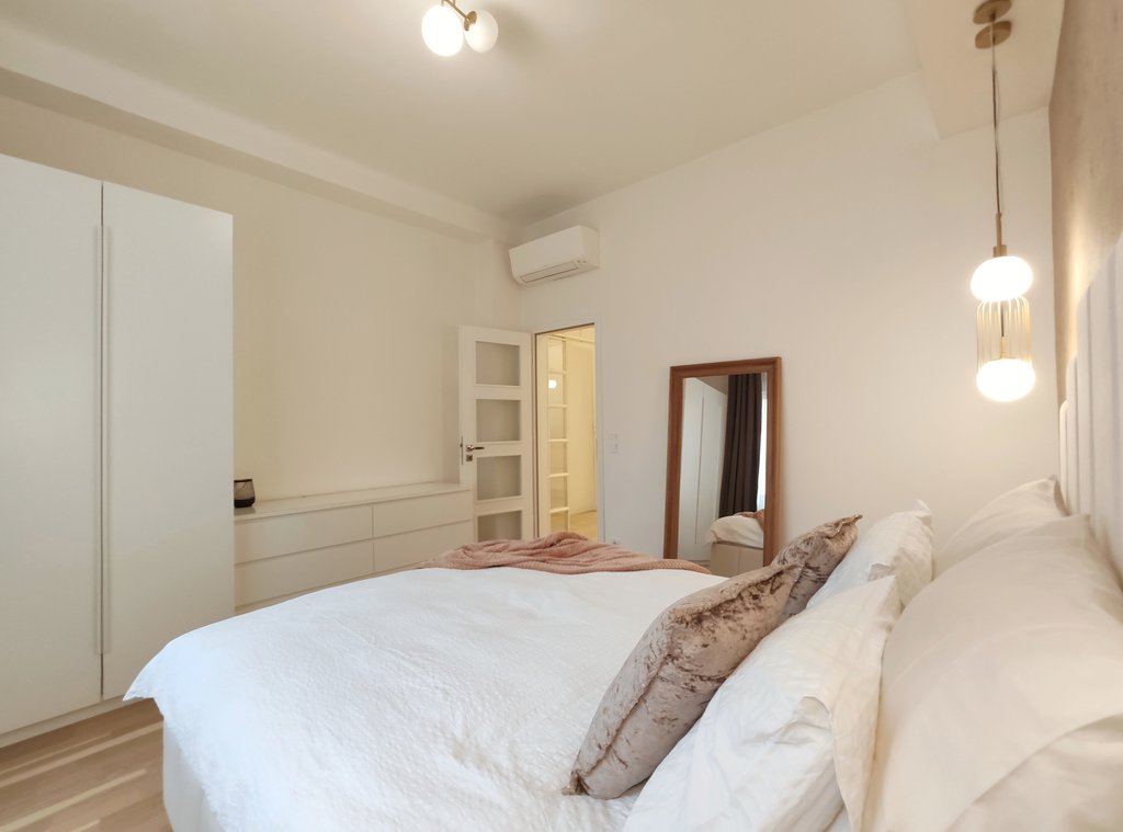 Budapest pezsgő belvárosában, az Opera Ház mögött a Hajós utcában kiadó egy újonnan 2020-ban felújított, utcai, liftes ház 2 emeletén lévő, légkondicionált és riasztóval felszerelt dupla teraszos lakás. A 86 m2-es egyedi tervezésű bútorokkal bebútorozott világos ingatlanban amerikai-konyhás tágas nappali került kialakításra teraszkapcsolattal. Kettő hálószoba közül a fő hálószoba saját fürdőszobával gardróbbal, és nem utolsó sorban saját erkéllyel is rendelkezik. A második hálószoba kádas fürdője külön bejáratú. Lakás központja a NOBILIA konyha, mely minden részletre odafigyelően gépesítve került kialakításra. A környék számos vásárlási és szórakozási lehetőséget kínál, neves divatházak üzletei, szépségszalonok, éttermek, kávézók is néhány perc alatt elérhetőek. Parkolás az utcán lehetséges, illetve a közelben őrzött parkolóházban garázs bérelhető. A tömegközlekedési lehetőségek kiválóak a környéken: Metro, villamos, buszmegállók pár lépésnyire találhatóak.