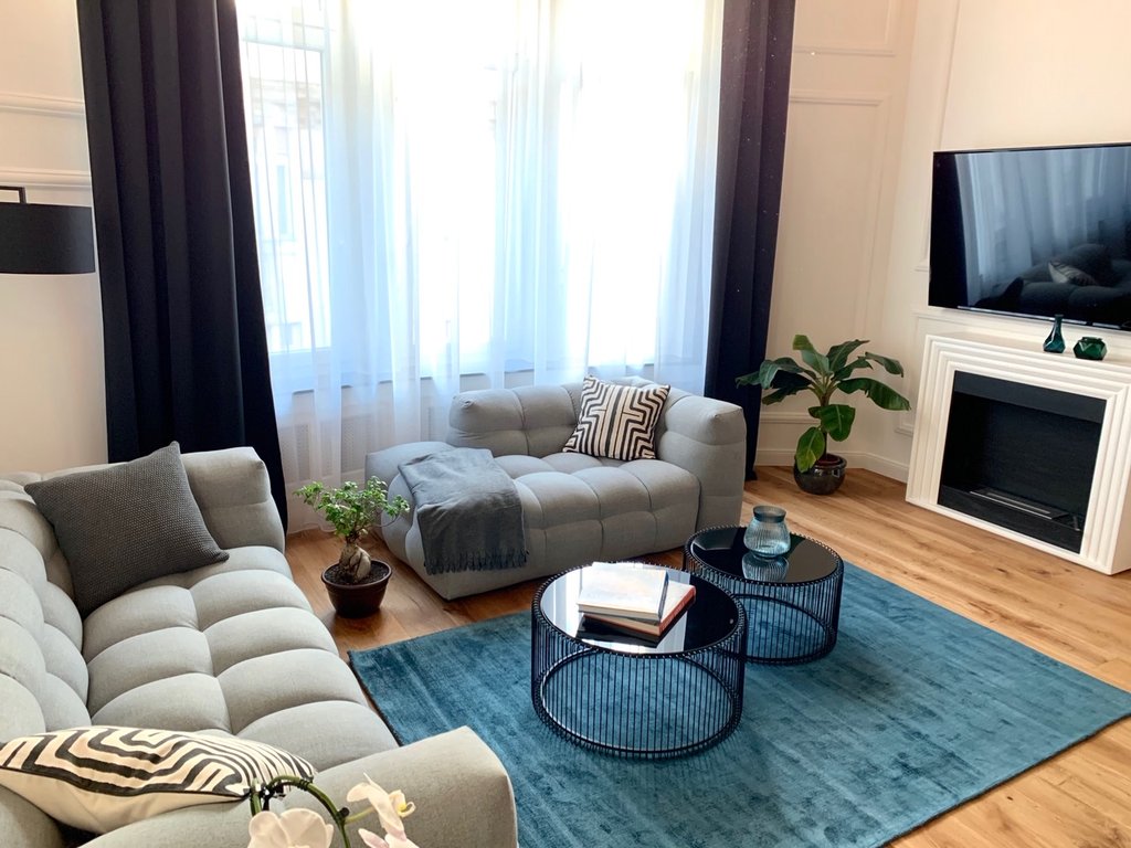 A történelemi belváros közepén, a híres Pilvax házban kiadó egy frissen felújított, modern lakás. A 3.emeleten található, lift van. 85 nm-n helyet kapott egy amerikai konyhás nappali és étkezőrész, két hálószoba, az egyikben saját kád és mosdó, a második kádas és zuhanyzós fürdőszoba pedig a hallból közelíthető meg. Dél-nyugati fekvésű, saroklakás, így egész nap világos. Extraként rendelkezésre áll egy látványkandalló, légkondicionáló, elektromos redőnyök és a minőségi elektronikai eszközök is. A környék népszerű éttermei rövid sétatávolsággal elérhetőek.