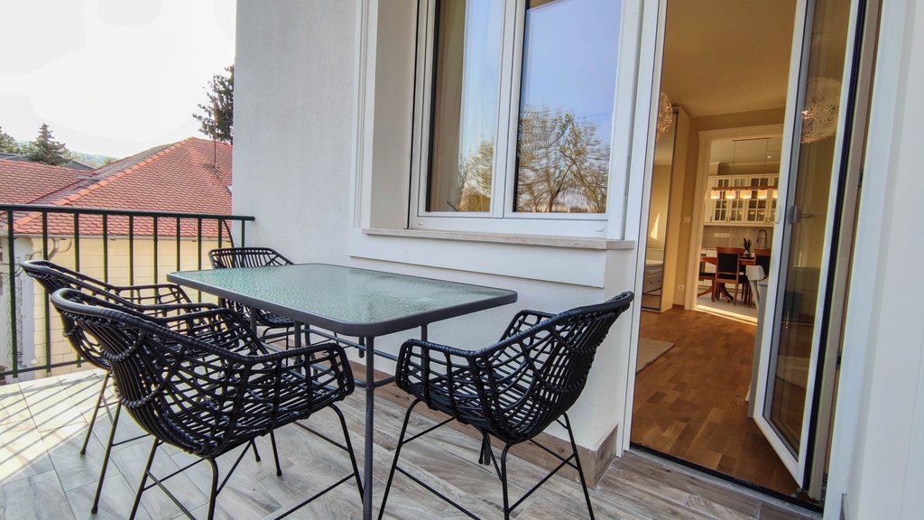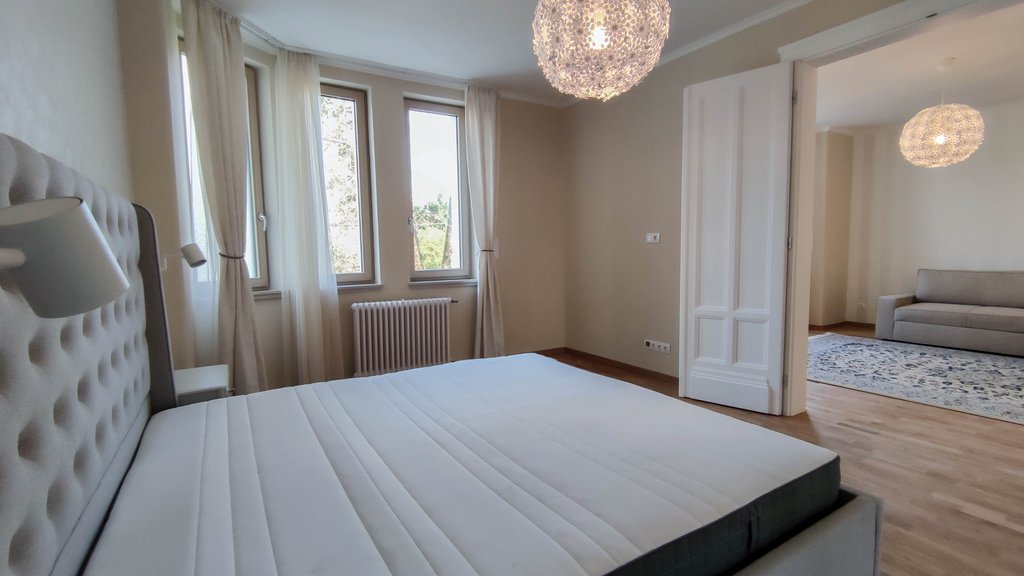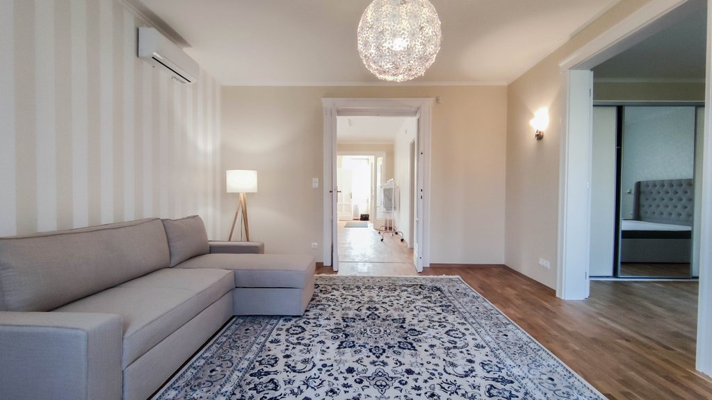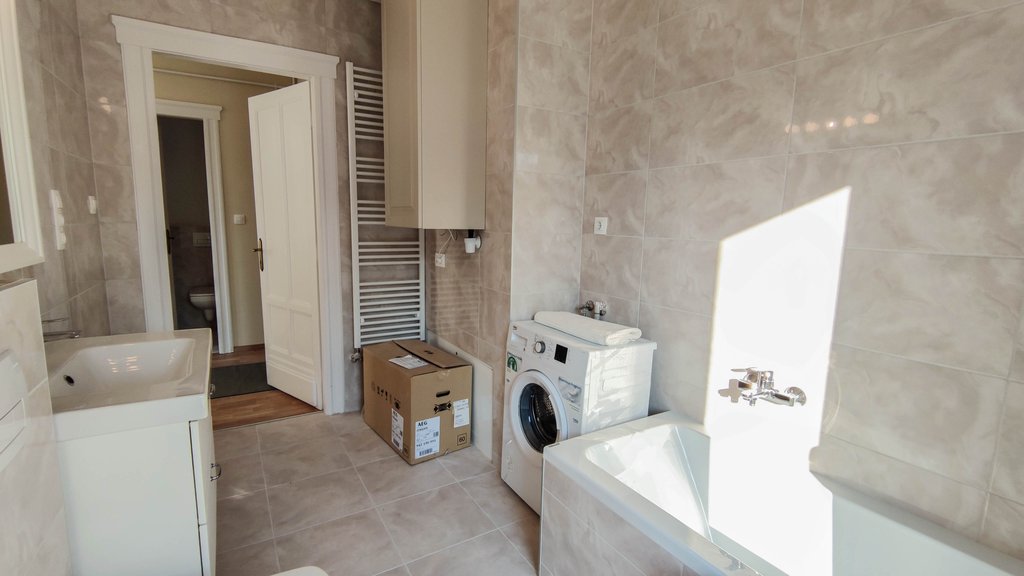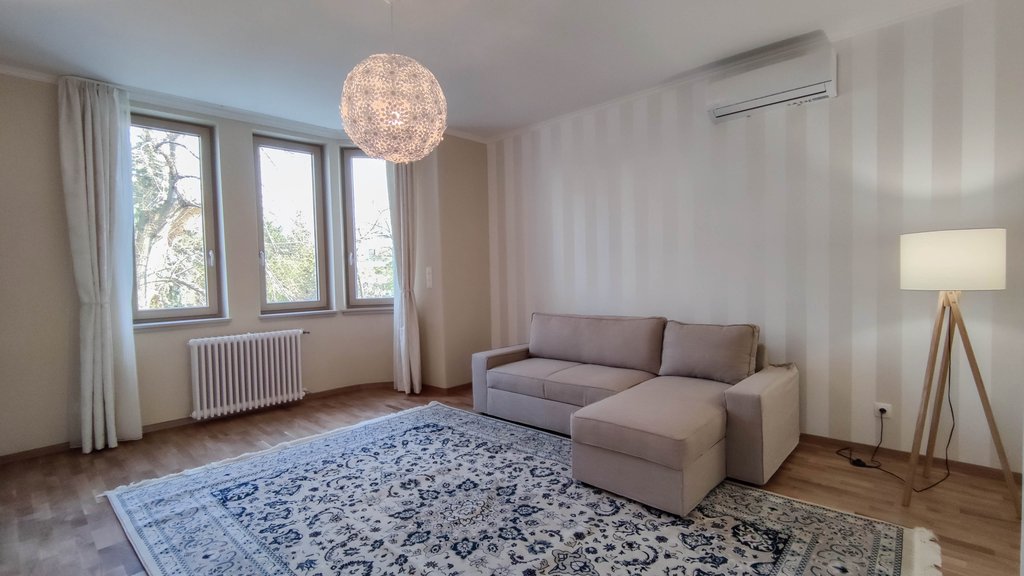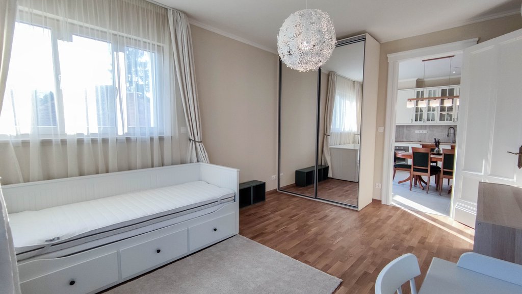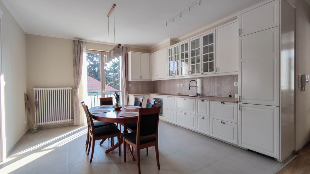 II. kerület gyönyörű, csendes utcájában, frissen felújított ház első emeletén kiadó ez a 122 nm-es lakás. Az ingatlanban helyet kapott egy tágas, mindennel felszerelt konyha és étkező, nappali, 2 nagyobb és egy kisebb hálsózoba, fürdőszoba káddal, vendégtoalett és gardrób. A lakáshoz tartozik egy nagyobb méretű terasz. Igényes bútorokkal berendezett, légkondicionált és riasztóval is felszerelt. A kertben közös használatú sütögető, illetve egy autó számára parkolás biztosított. Kiváló választás pároknak, kisebb családoknak. A Budagyöngye bevásárlóközpont mindössze 5 perces sétatávolsággal elérhető, de busz és vilalmos megálló sem több ennél.