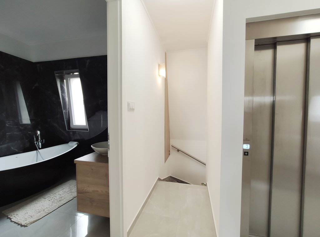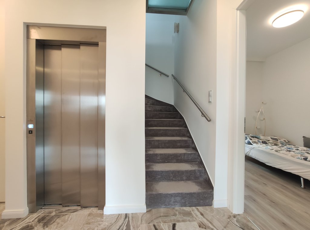Rendezett (összesen 2 lakásos) liftes házban, szép parkosított önálló díszkerttel, öntöző rendszerrel, egyéb extrákkal! (Pl. Fűthető burkolatok: lépcső és garázsbejáró is, valamint teraszfűtés, ereszfűtés: igazi luxus!)