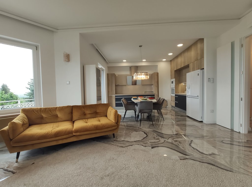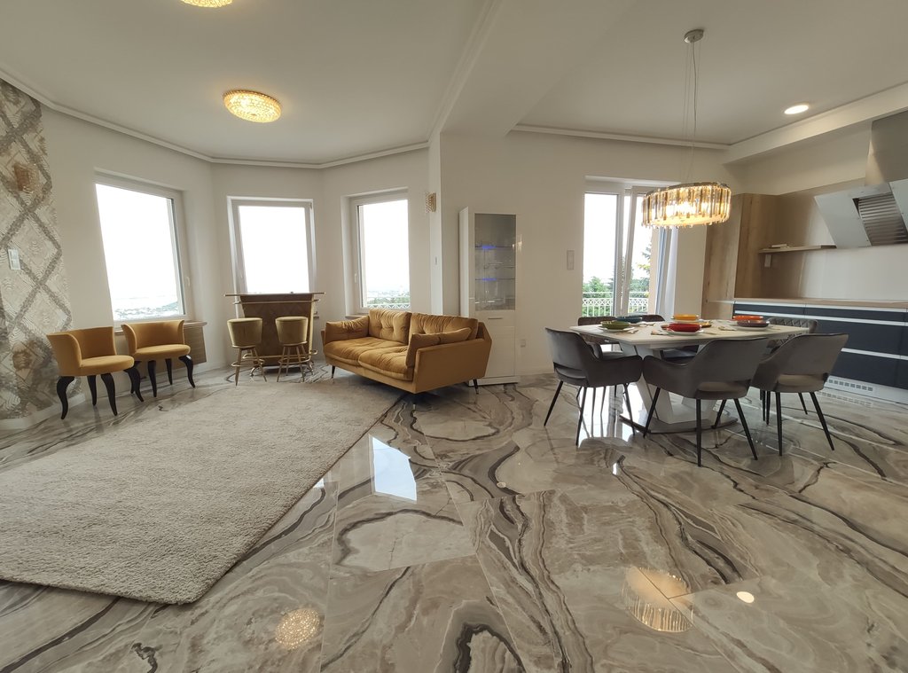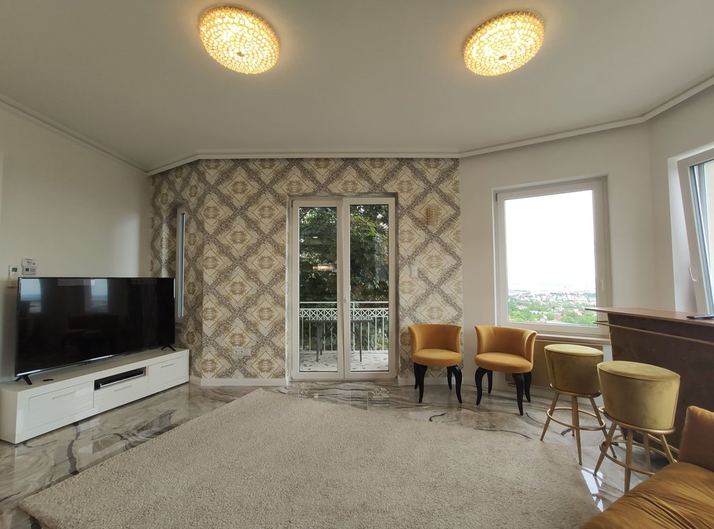 Nappali(+amerikai konyha+étkező)+4 hálószoba+2 fürdőszoba, összesen 145 nm-es, vadonatúj (még senki nem lakott benne!), belső kétszintes, padlófűtéses, minden helységben külön klímás, bútorozott (egyedi beépített szekrények), örökpanorámás “csoda lakás” belső lifttel, extra luxus kivitelben. Ezen kívül a lakáshoz tartozik még egy szeparált külön helyiség (19 nm, pl. vendég apartman), valamint 1 garázs hely és 1 gépkocsi beálló is, illetve egy pincerész, ez így együtt hosszútávra kiadó!