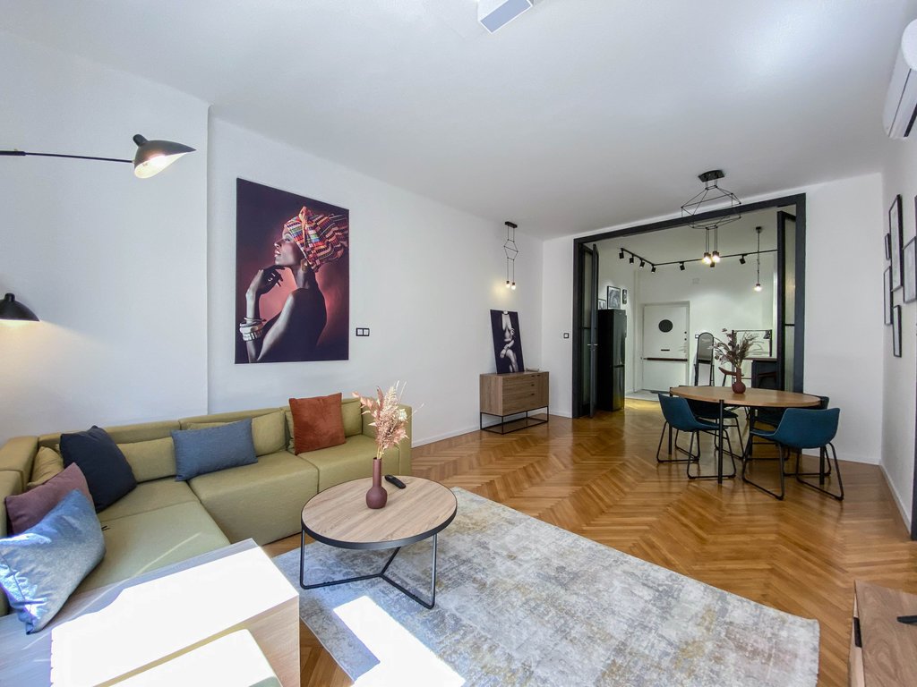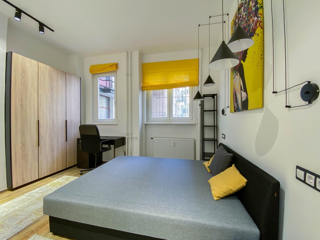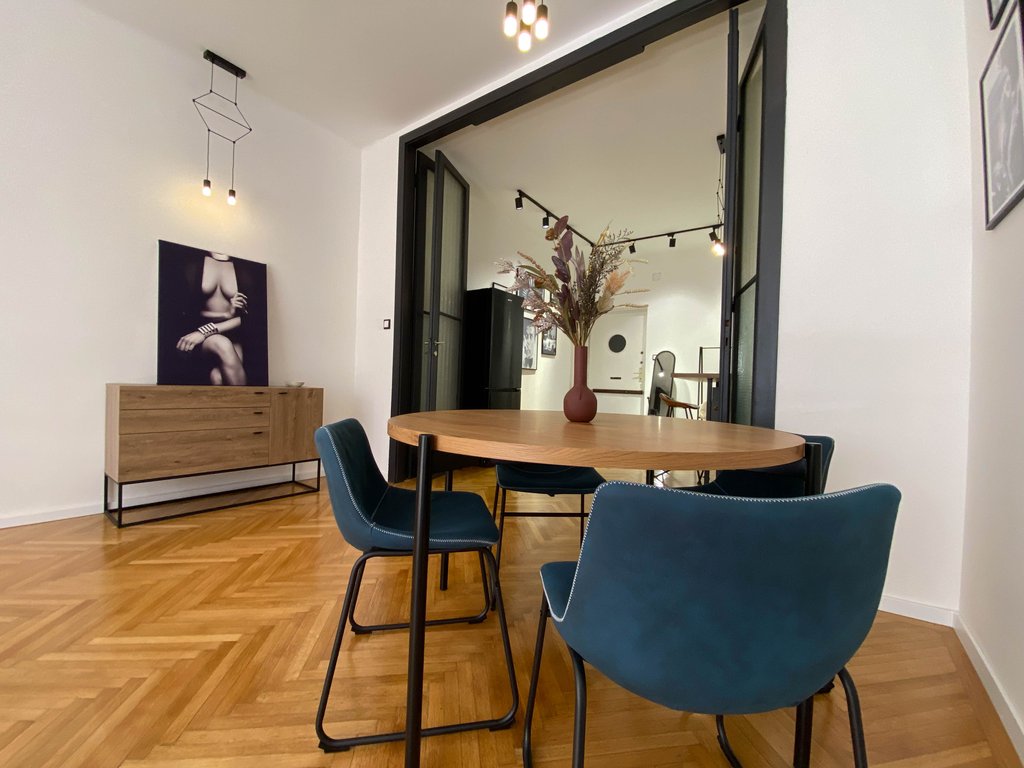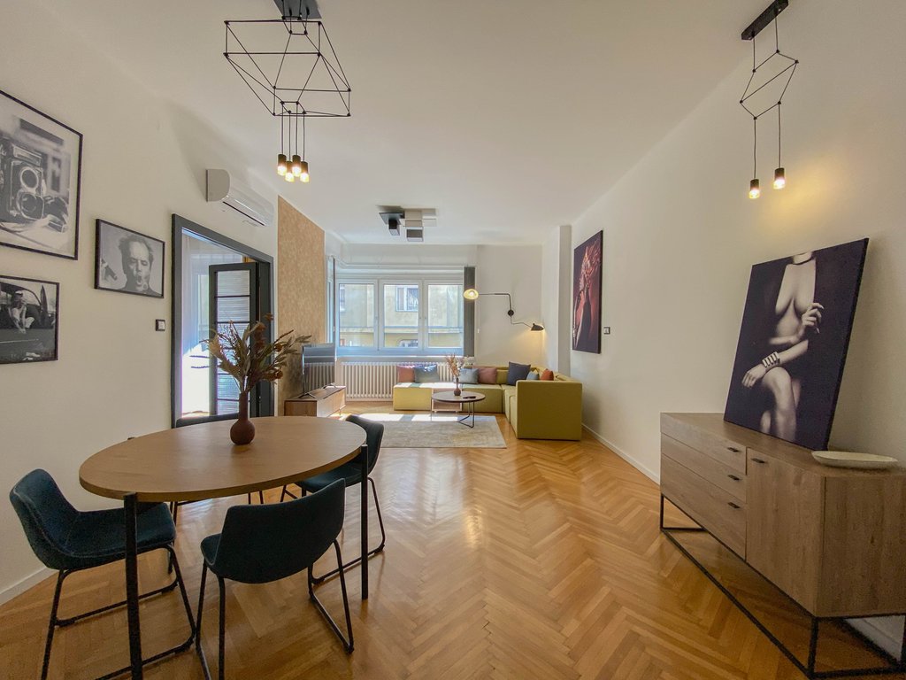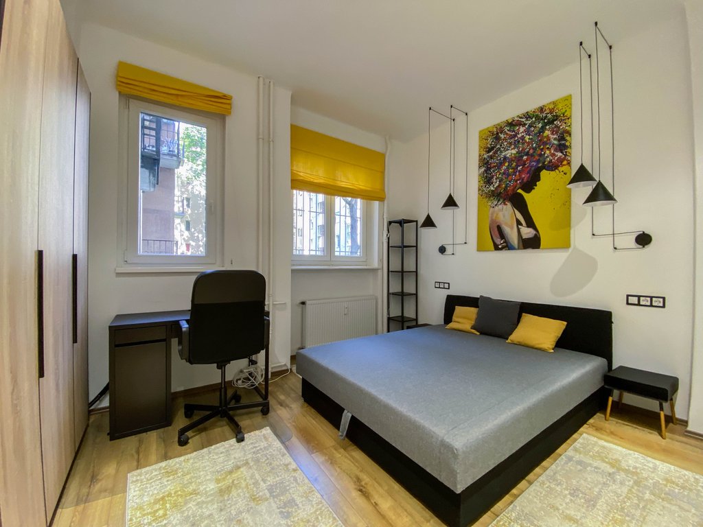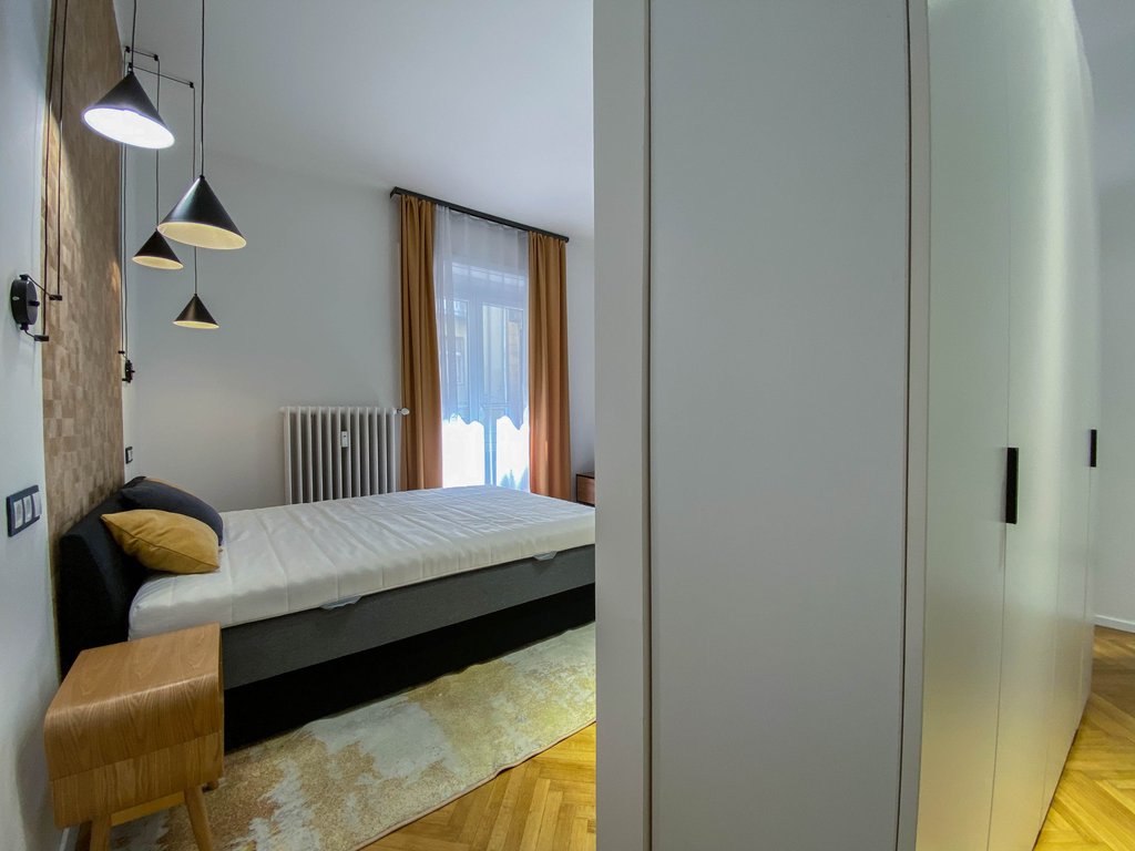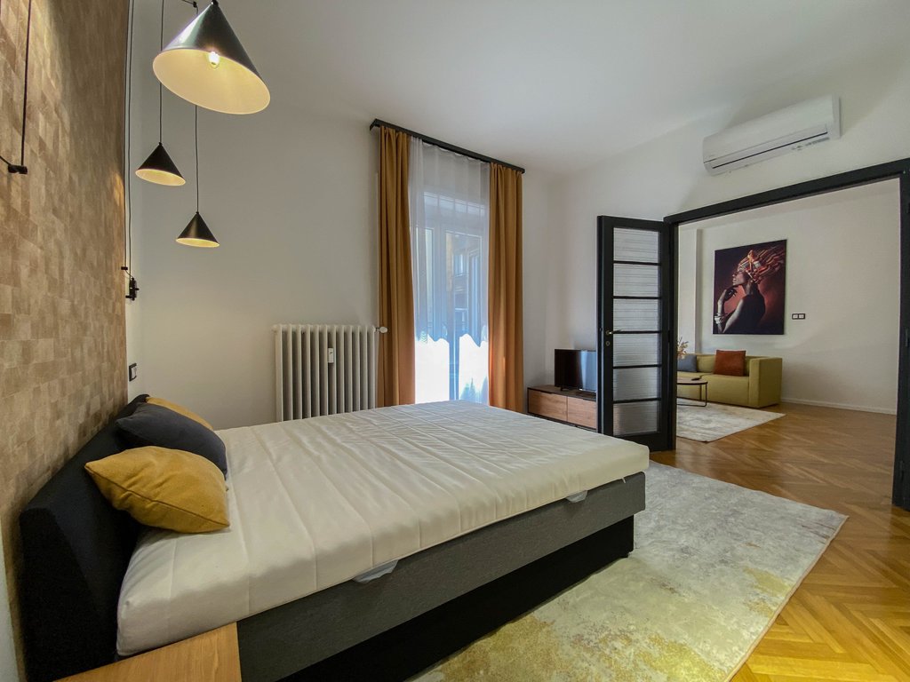 Frissen felújított, modern lakás kiadó Újlipótváros frekventált részén, karnyújtásnyira a körúttól és Jászai Mari tértől. Az első emeleti lakásban helyet kapott egy felszerelt konyha, amely egybenyitható vagy szeparálható is a nappali étkezőtől, szülői hálószoba gardróbrésszel és zuhanyzós fürdőszobával, vendégháló szintén saját fürdővel és egy vendégmosdó. Az egyik hálóból erkély nyílik az utcára, míg a másik a csendes belső udvarra néz. Légkondicionált, teljesen berendezett, ideális választás pároknak, egyedülállóknak. Az utcában számtalan igényes étterem, cukrászda és vásárlási lehetőség elérhető, sőt a Margit sziget is könnyedén elérhető.