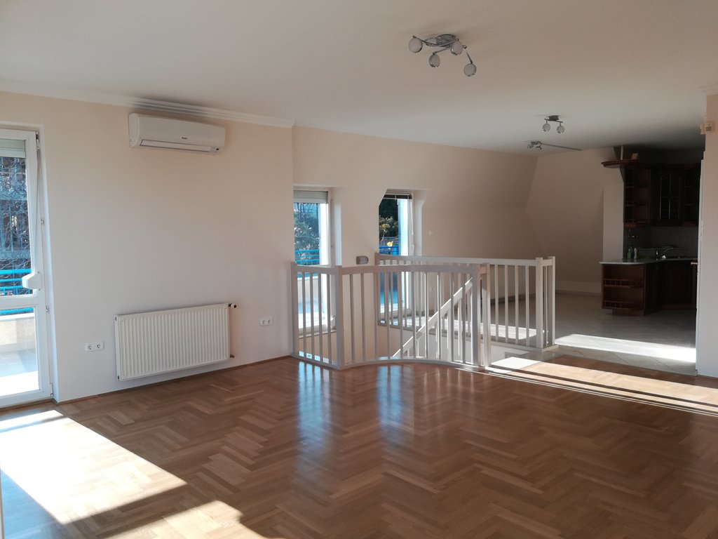 II.kerület közkedvelt részén kiadó egy tágas, belső kétszintes lakás. A napfényes ingatlanban helyet kapott 3 hálószoba, két fürdőszoba, egy hatalmas amerikai konyhás nappali és étkező, valamint egy panorámás terasz. Az ingatlan légkondicionált, rendkívül jó beosztású és bútor nélkül elérhető. Az épület garázsában két autó számára biztosított a parkolás, valamint egy tároló is tartozik hozzá. Kiváló választás családoknak, akik a belvároshoz közel (a Széll Kálmán tér vagy Margit híd is csupán 5-10 perc autóval), mégis nyugodt környéken szeretnének élni.
