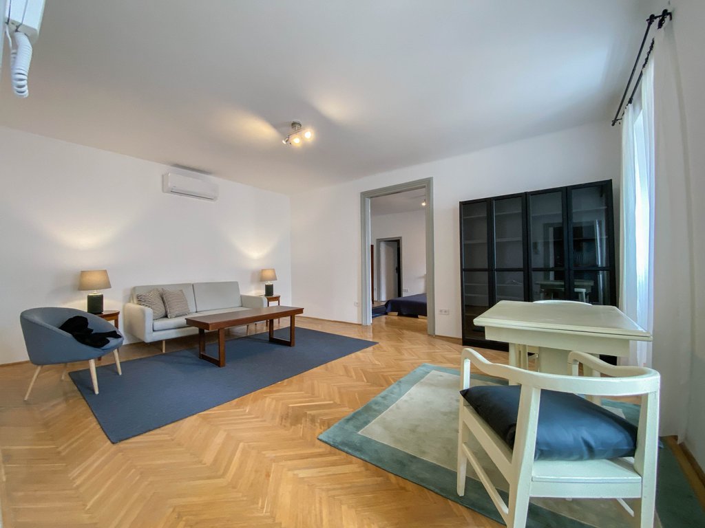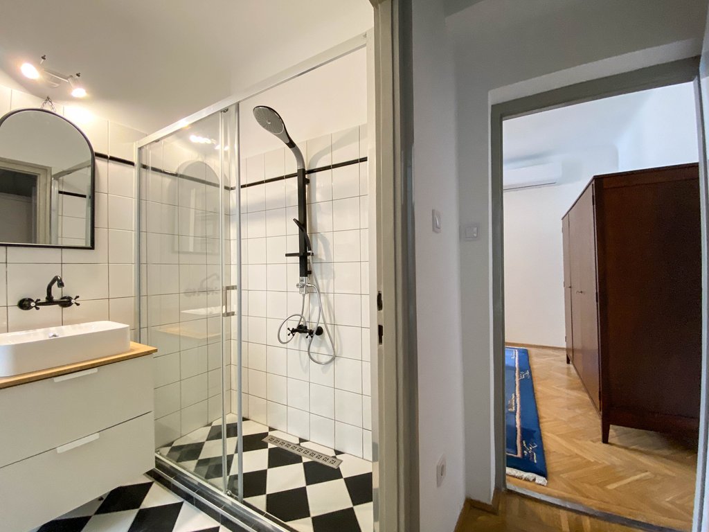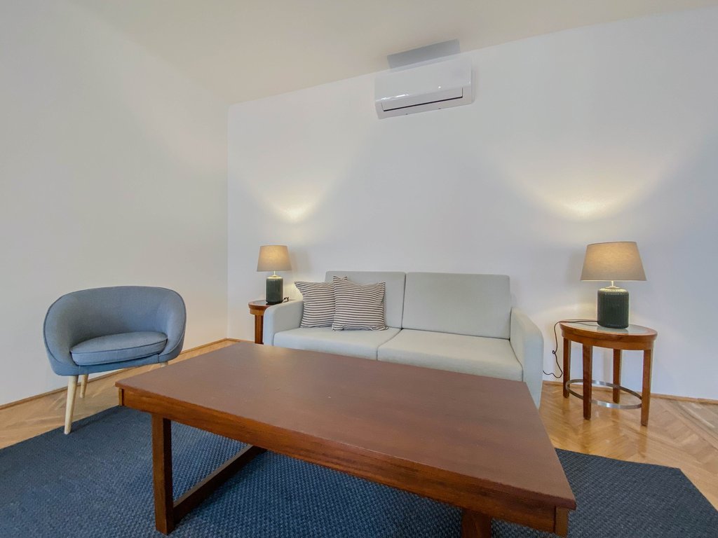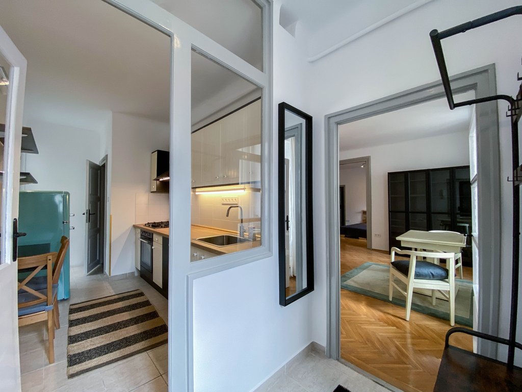 I.kerületben, a Várnegyed szívében kiadó egy 1891-ben épült csodás ház 2.emeletén lévő 72 nm-es frissen felújított lakása. Az előtérből nyílik a felszerelt zárt konyha, kamrával ahol helyet kapott a mosó- és szárítógép, egy tágas nappali étkezővel, nagy hálószoba, ahonnan nyílik egy folyosó, zuhanyzós fürdőszoba és egy kis szoba, ami alkalmas vendégek fogadására, dolgozónak vagy gardróbnak. A lakás ízléses bútorokkal berendezett, légkondiegységekkel ellátott, amelyek a fűtésről is gondoskodnak. Az épületben nincs lift. Kiváló választás egyedülállóknak vagy pároknak. A Várnegyed kiváló éttermeket és kávézókat kínál.