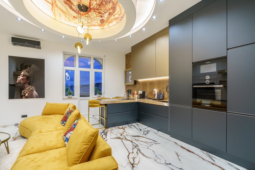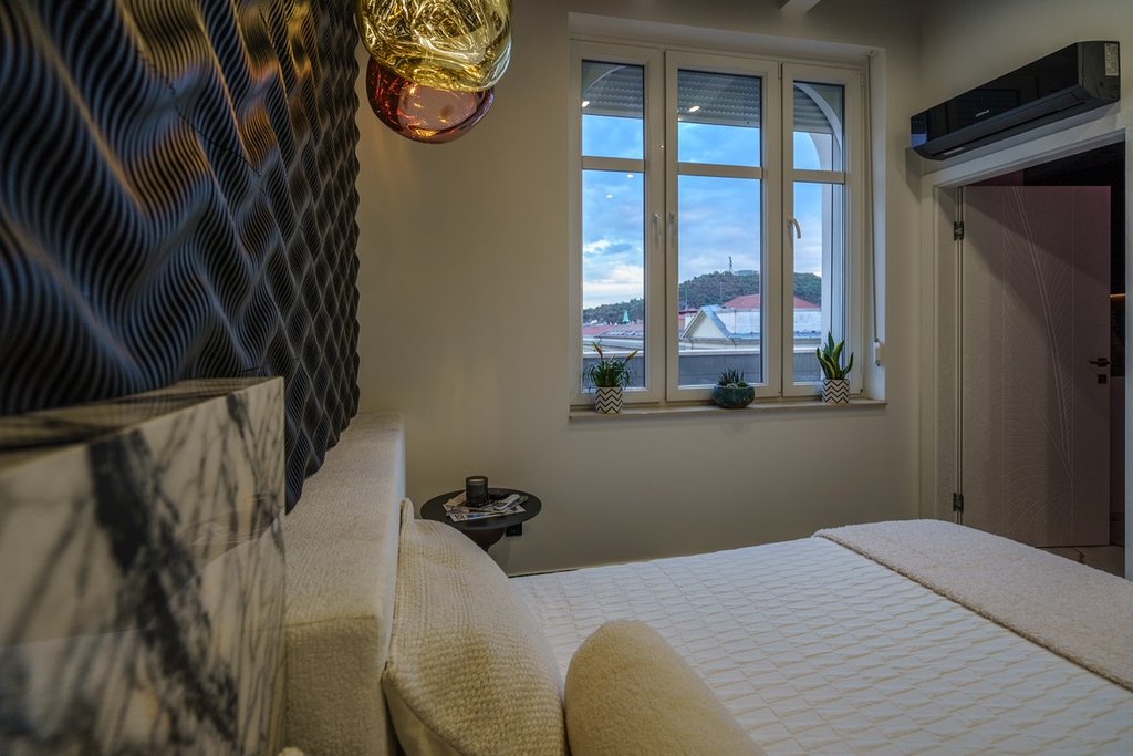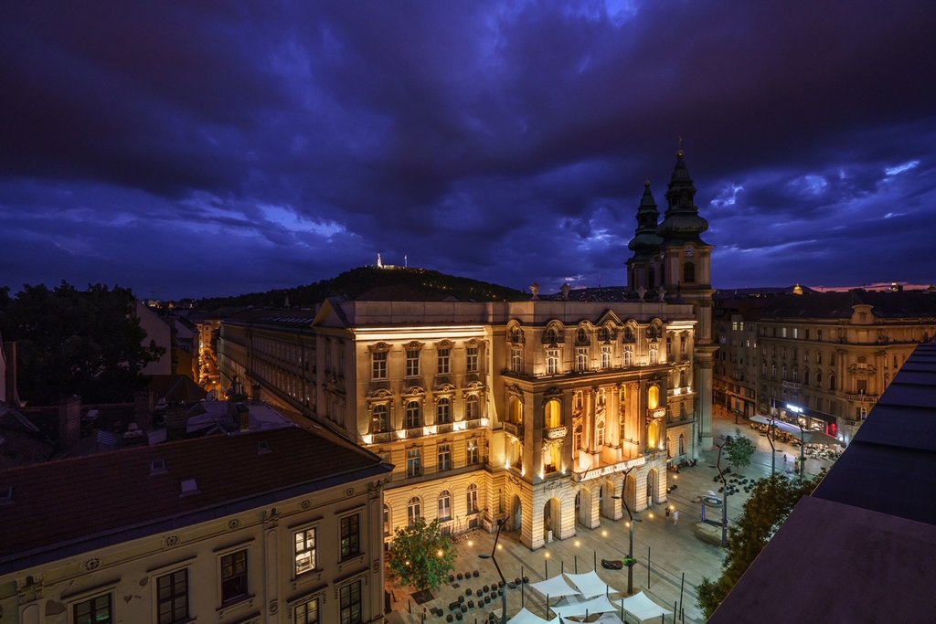 Belvárosban, Az Egyetem tér mellett az 5. kerületi Kecskeméti utcában elején eladó egy 101 nm, impozáns, luxus, erkélyes (10 nm), 3 szobás, duplakomfortos, bútorozott, 5 emeleti, lakás panorámával a Gellért-hegyre és a Szabadság szoborra! Amerikai konyha, nappali, két háló saját fürdőszobával, két Wc, és sok beépített szekrény. Extrák: Onyx kandalló párásítós betéttel, Onyx gardrób frontok, gránit konyhapult, mészkő erkély, Porcelán csempék, mozaikok, Fólia mennyezetek, egyedi design ágyak, design ajtók, lámpák es radiátorok. Egyedi forgatható tükrök, Olasz beépített borhűtő, Bosch es Bora konyhagépek, amerikai dió parketta, Zieta dekoráció, 250×120-as csempék, Grohe zuhany es csaptelepek, riasztó, padlófűtés, kandalló, kő fürdőkád. Az V. kerület közkedvelt része az Egyetem tér és környéke. Rengeteg hangulatos kávézó, étterem, galéria található a környéken, melyek az üzletemberek és a fiatalok kedvelt találkozóhelyei. Az ingatlan a nyüzsgéstől pár lépésre, de mégis csendes helyen található. A metró és több villamos, illetve buszmegálló sétatávolságra van. Számos bevásárlási lehetőség, kisebb élelmiszerüzletek és a Vásárcsarnok néhány percre található. Az ELTE több kara, a Corvinus és a Szabó Ervin Könyvtár szintén gyalogosan elérhetők. A Vételárba beletartozik a berendezés.