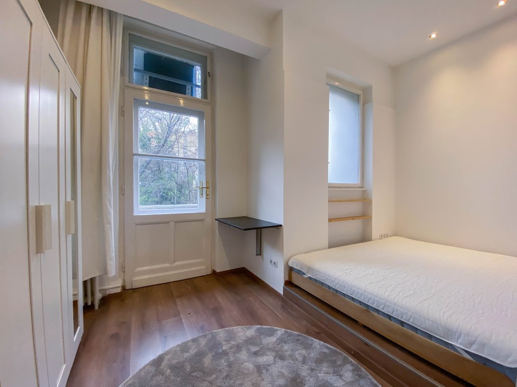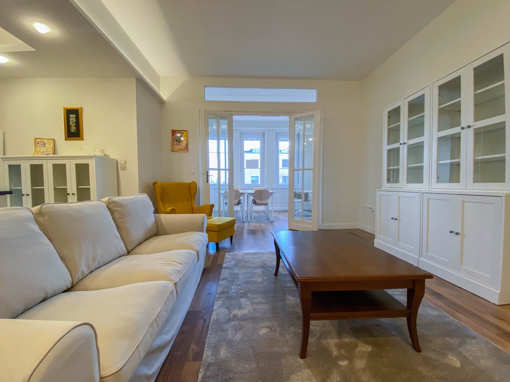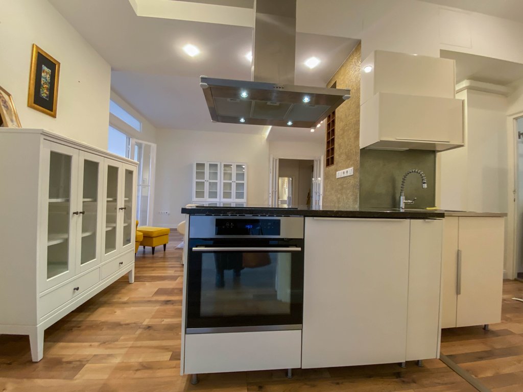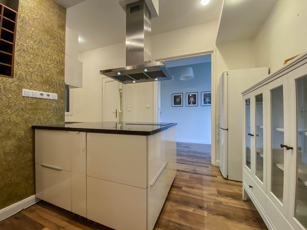 Belbuda frekventált részén, mégis csendes utcában, igényesen felújított 84 nm-es lakás kiadó. Az első emeleti ingatlanban helyet kapott egy nagyon tágas amerikai konyhás nappali, félig leválasztott étkező vagy dolgozórész, 2 hálószoba és 2 zuhanyzós fürdőszoba. A fő hálószobából még a Parlamentre is rálátni, míg a kisebb hálóból kis erkély nyílik a zöld belsőkertre. Légkondicionált, majdnem teljesen bútorozott. Kiváló választás pároknak, egyedülállóknak. Több kávézó és étterem van a környéken, de sétatávolságra található a Széll Kálmán tér és a Mammut Bevásárlóközpont is.