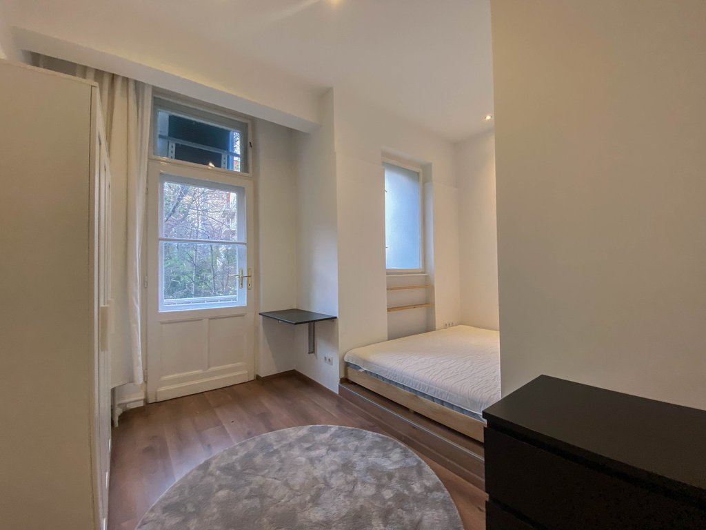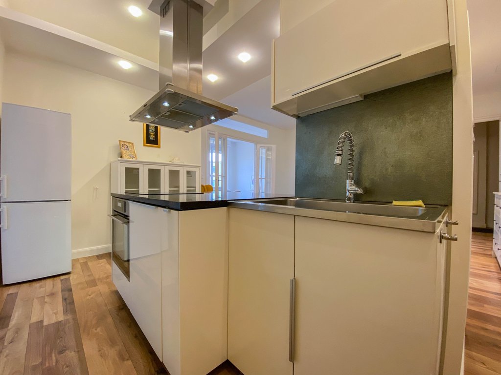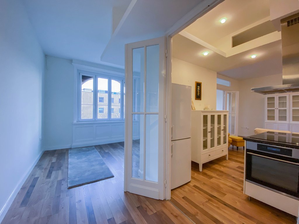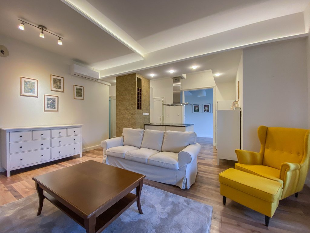 Belbuda frekventált részén, mégis csendes utcában, igényesen felújított 84 nm-es lakás kiadó. Az első emeleti ingatlanban helyet kapott egy nagyon tágas amerikai konyhás nappali, félig leválasztott étkező vagy dolgozórész, 2 hálószoba és 2 zuhanyzós fürdőszoba. A fő hálószobából még a Parlamentre is rálátni, míg a kisebb hálóból kis erkély nyílik a zöld belsőkertre. Légkondicionált, majdnem teljesen bútorozott. Kiváló választás pároknak, egyedülállóknak. Több kávézó és étterem van a környéken, de sétatávolságra található a Széll Kálmán tér és a Mammut Bevásárlóközpont is.