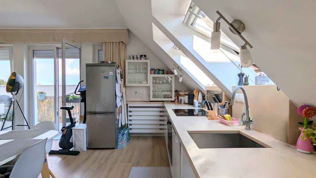 A 3. kerületben, kiváló beosztású, napfényes lakás kiadó a Kolosy térnél, nagyon hangulatos és csendes kis utcában. A legfelső emeleti ingatlanban egy amerikai konyhás nappali, kettő hálószoba, kettő fürdőszoba (egy kádas és egy zuhanyzós), egy mosókonyha és egy gardrób is található. Az erkélyről pazar kilátás nyílik. A lakás részben klimatizált és bútorozott. A lakástól 5 perces gyalogtávolságra postát, piacot, bevásárló központokat, bankokat, éttermeket, uszodát találunk. A tömegközlekedés kiváló, buszok, villamosok és a Hév is megáll a közelben.